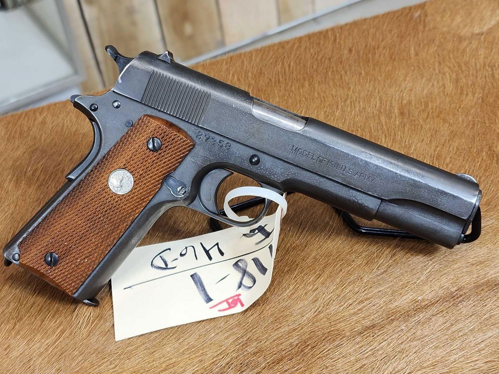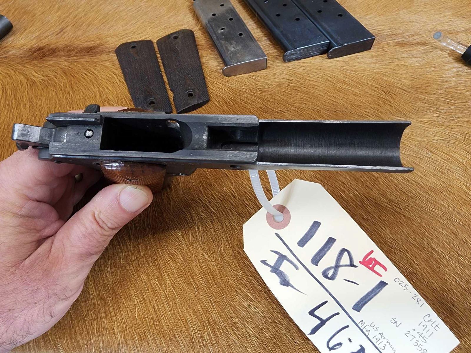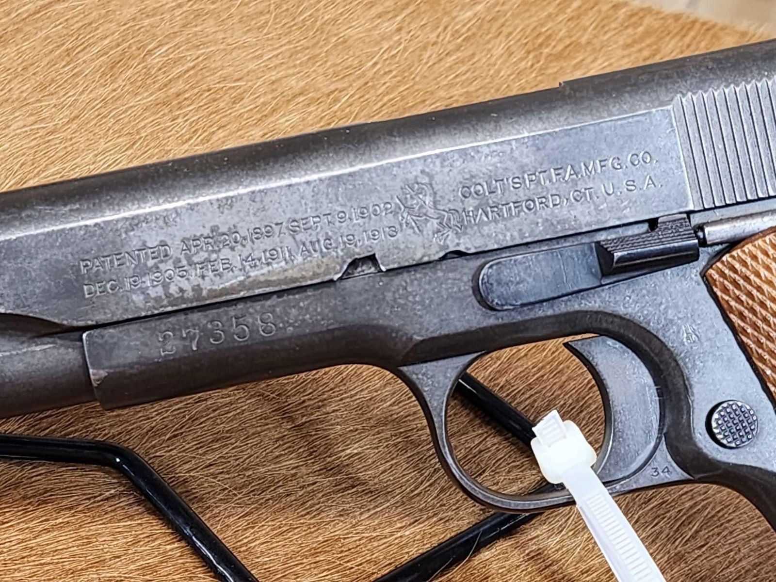118.1 Great condition for its age shiny bore good rifling crisp action comes with period correct shoulder holster marked US along with 3 extra mags & original grips SN 27358