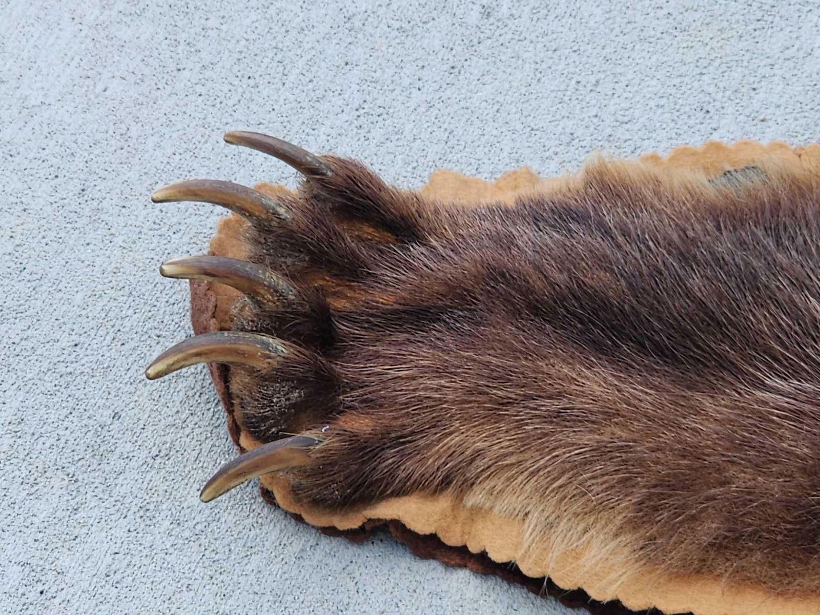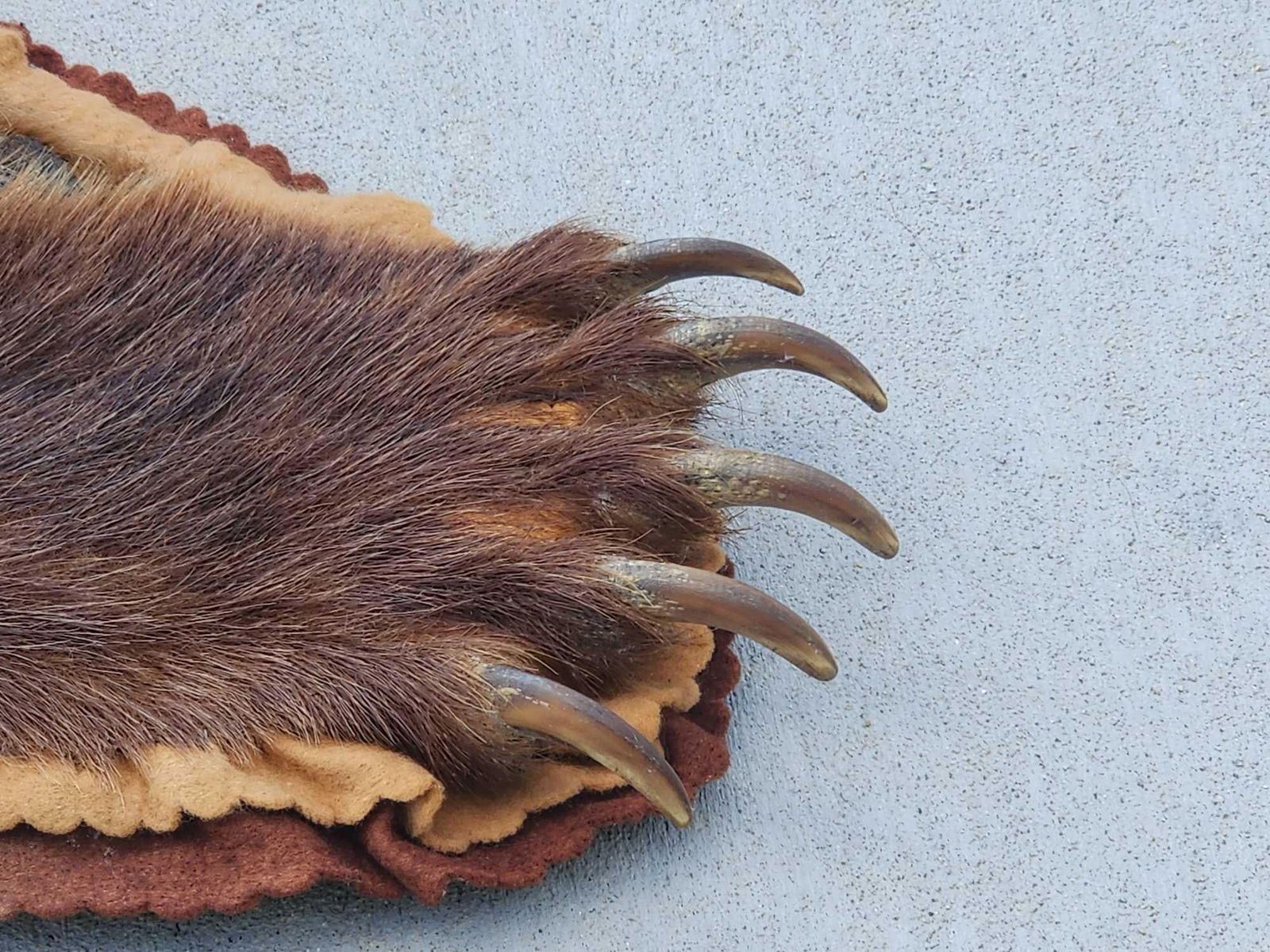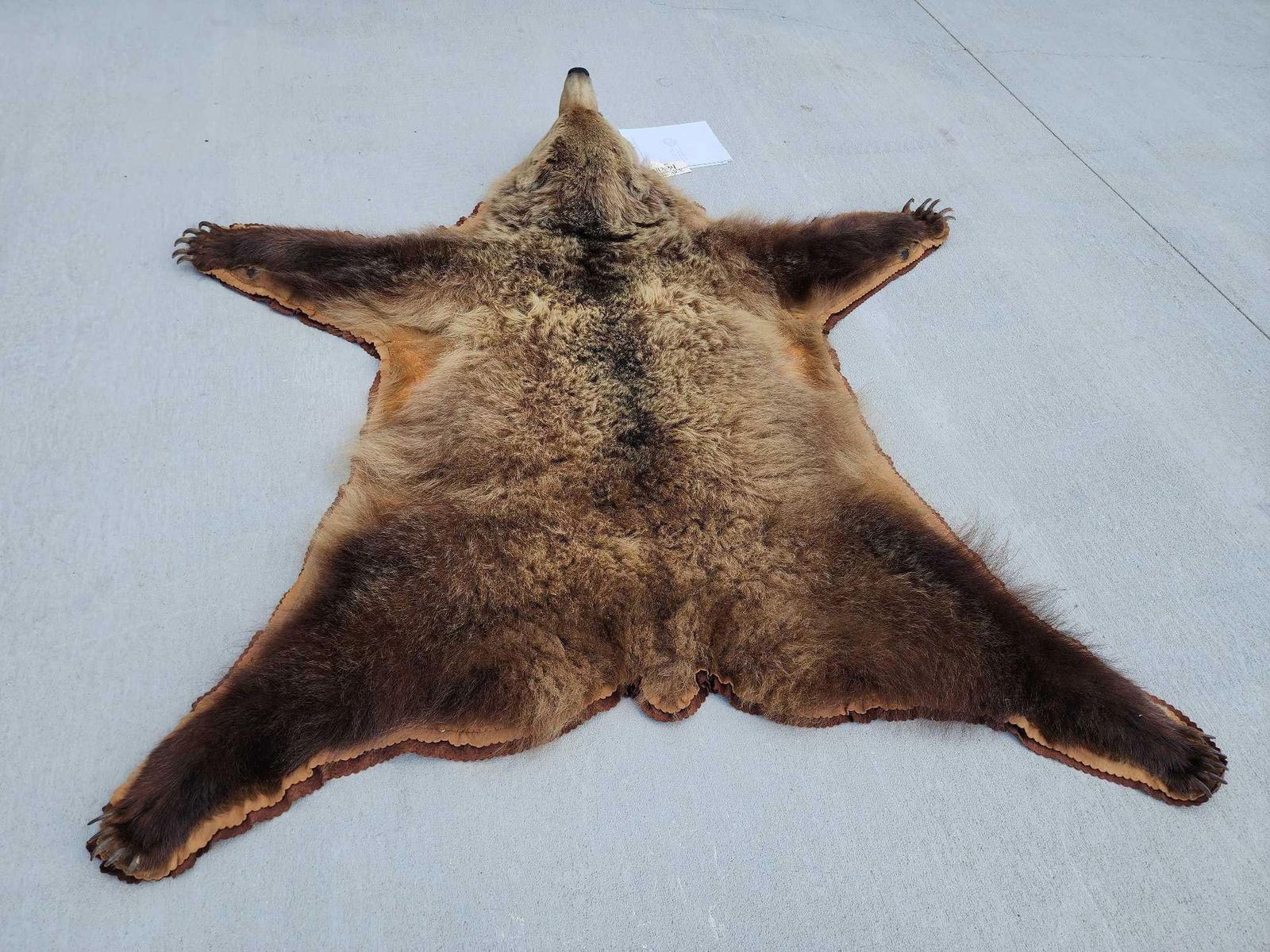 113.34 Thick fur great colors big real claws intact double felt edges durable padded backing pliable tan excellent example of a quality vintage rug harvested in Alaska 1971 this rug has been well cared for about 77" long x 76" wide