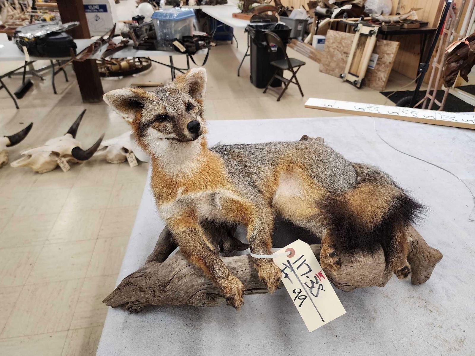 Lot 99 Grey Fox Relaxing On Driftwood Taxidermy Mount