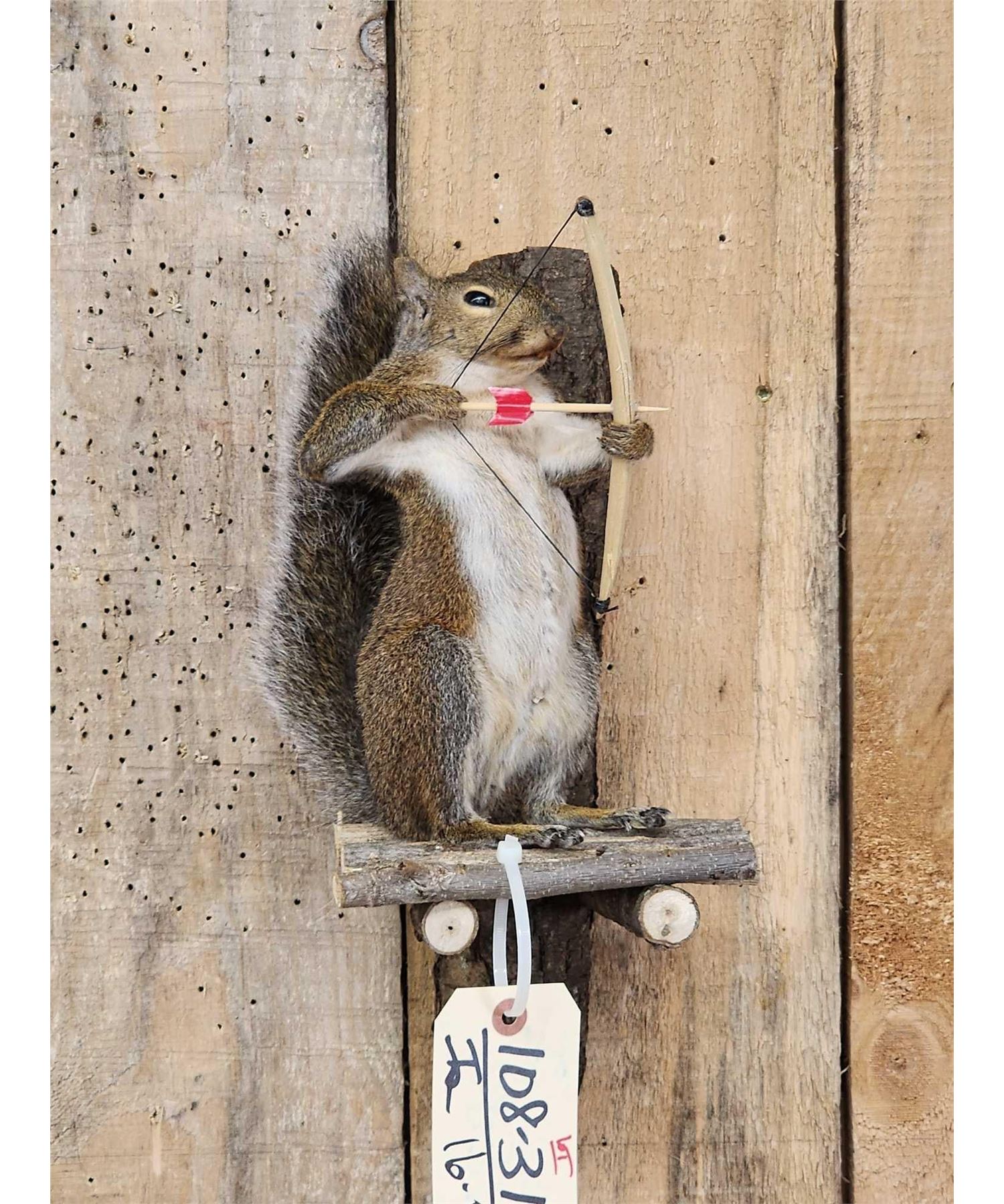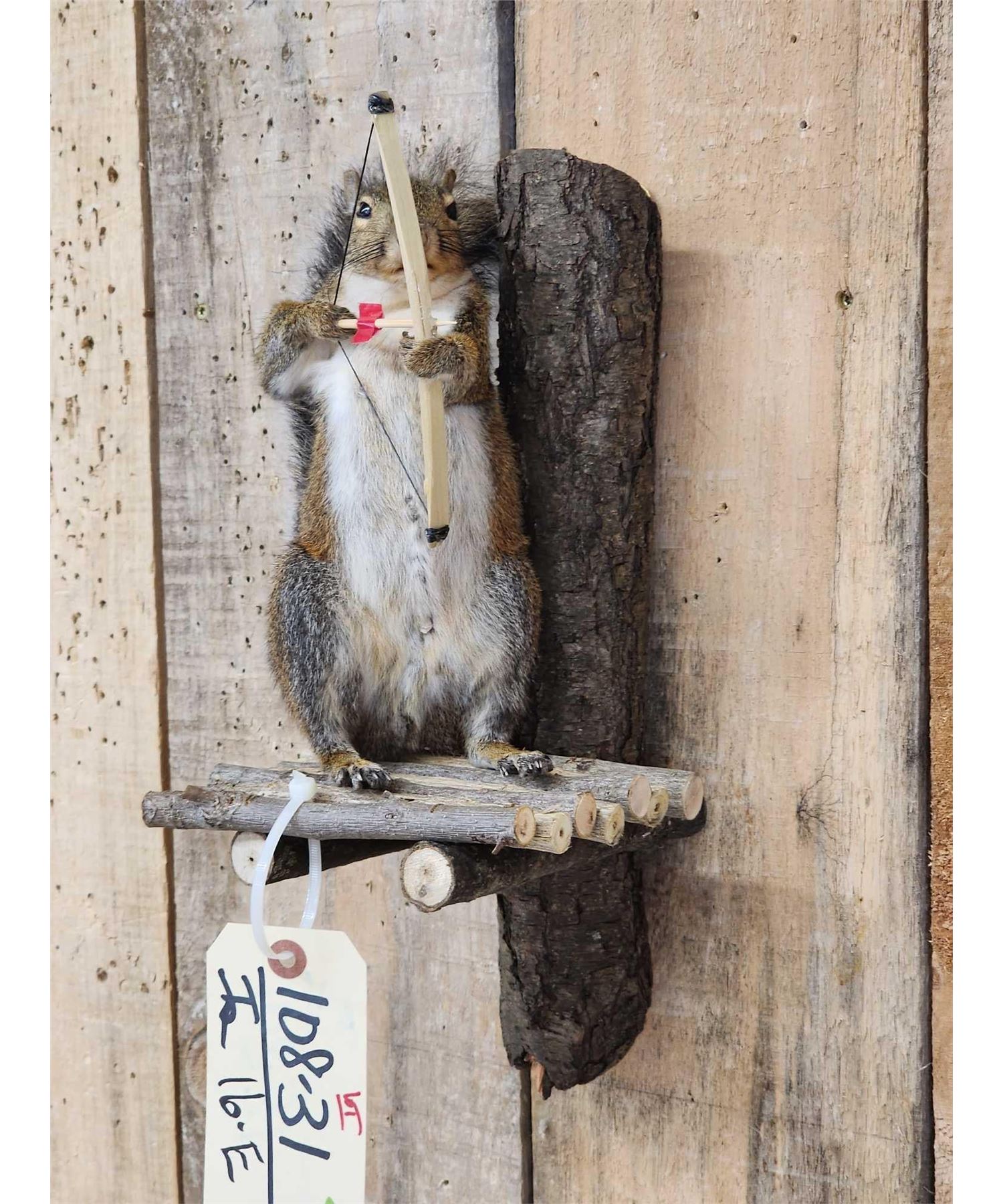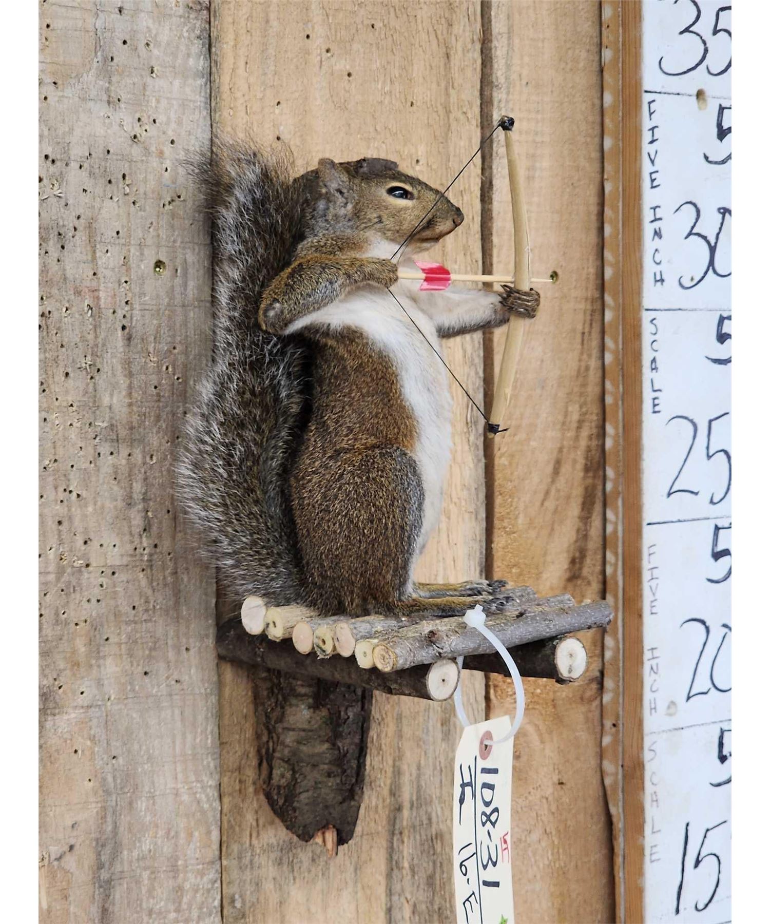 Lot 16E Bow Hunting Squirrel In A Tree Stand Taxidermy