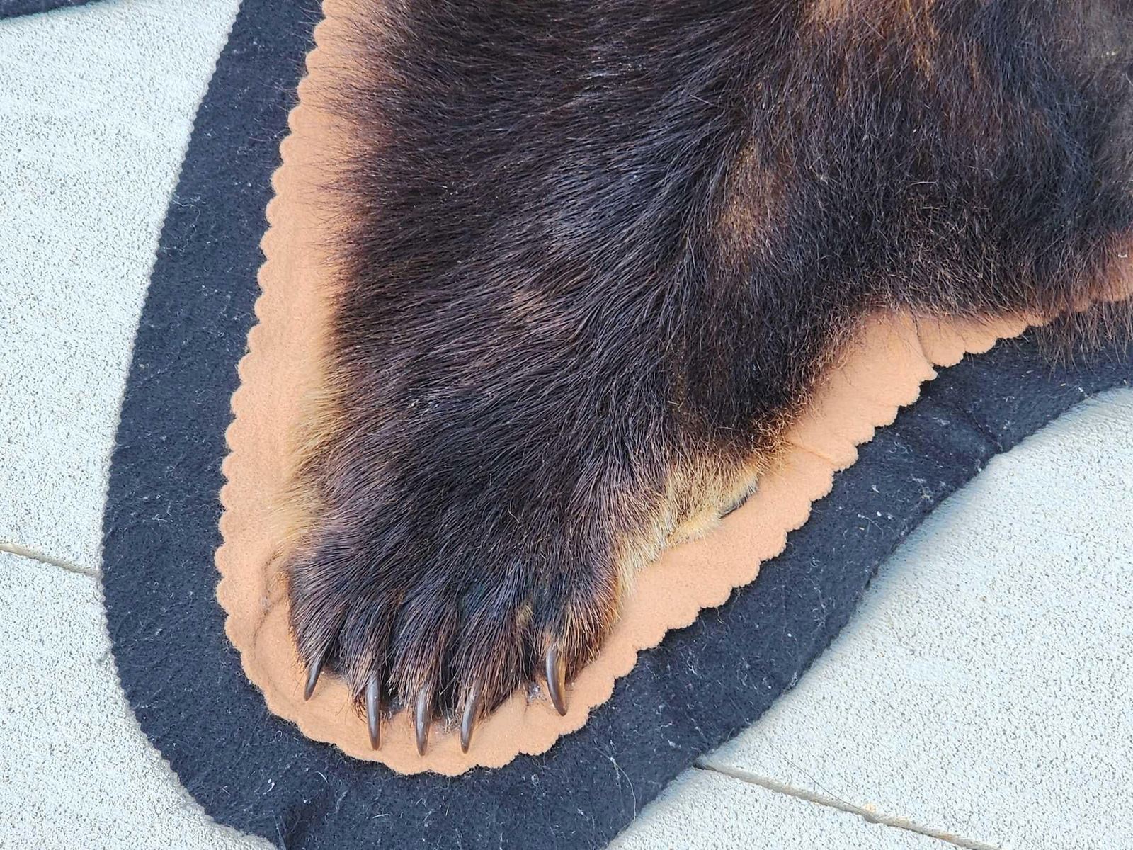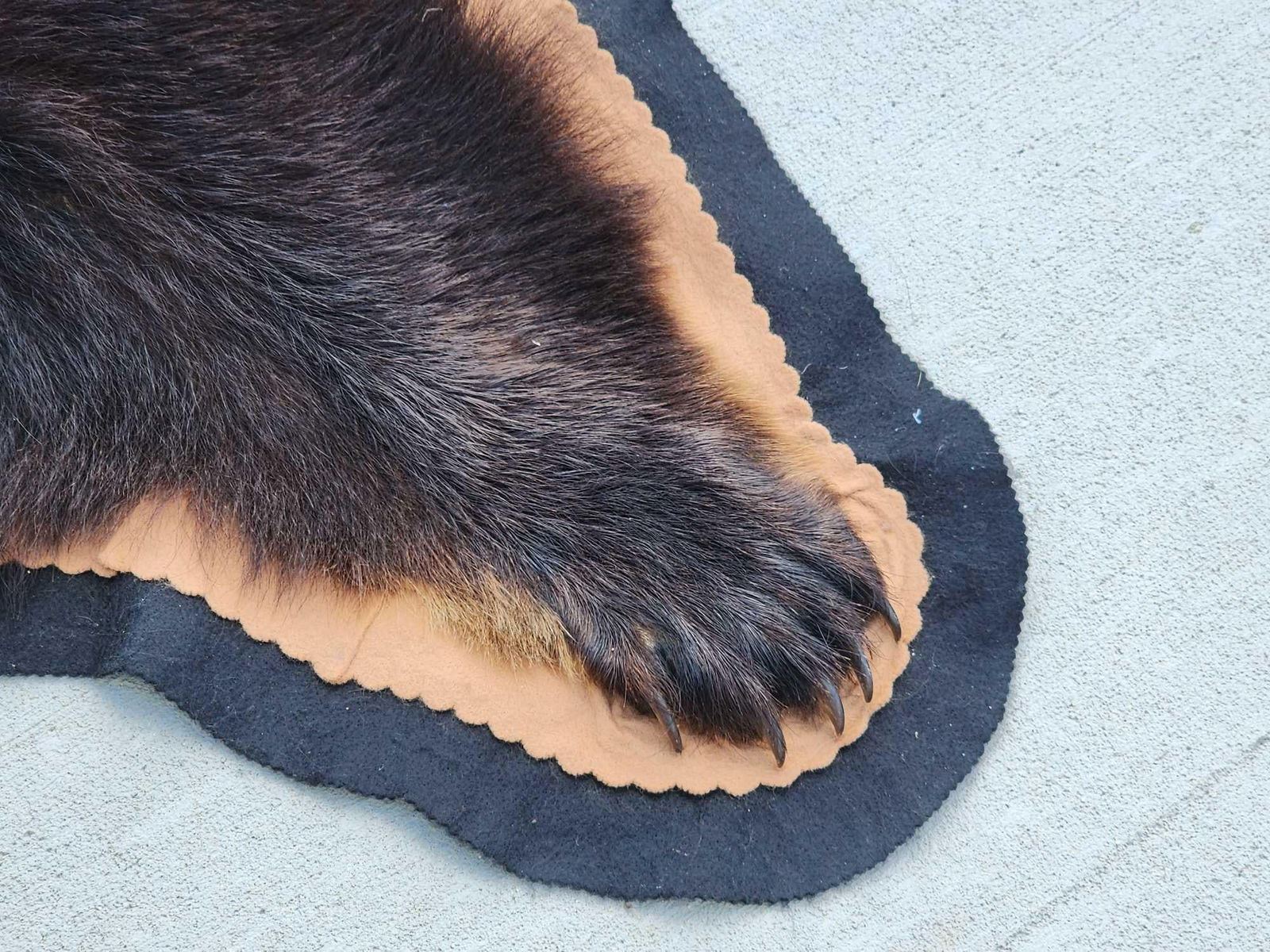 9.131 Nice vintage rug good color double felt edges claws intact about 76" long x 70" wide