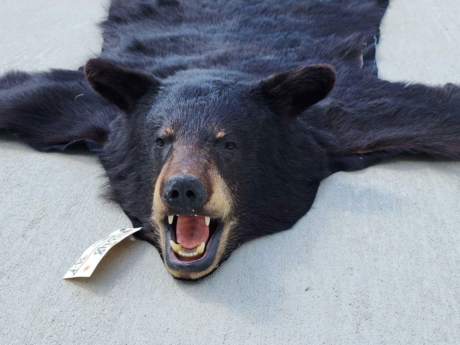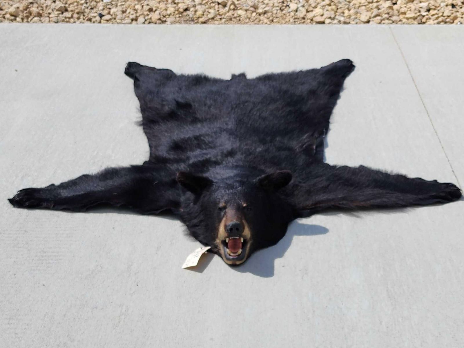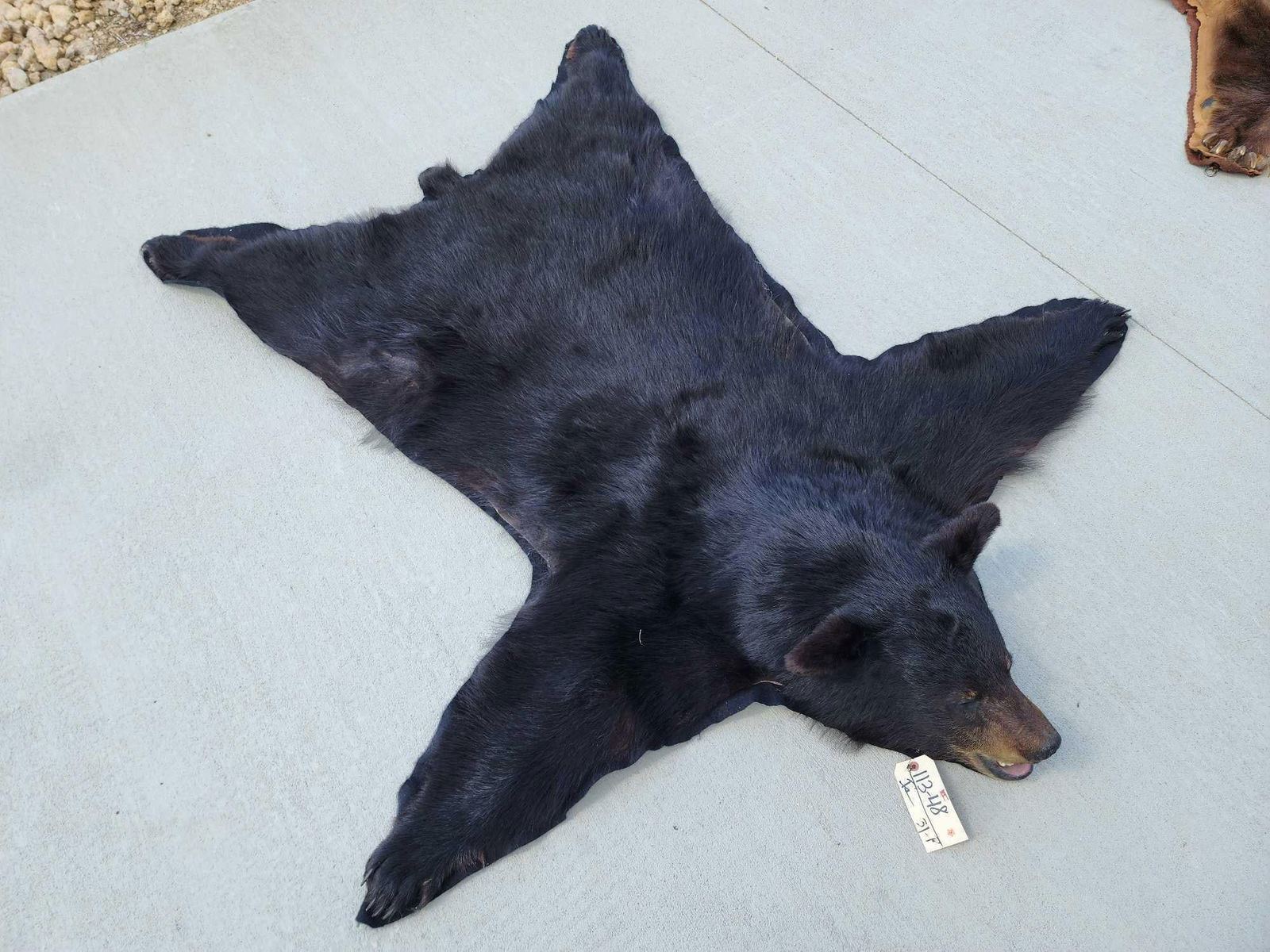 113.48 Jet black fur big head claws intact felt backing about 75" long x 66" wide