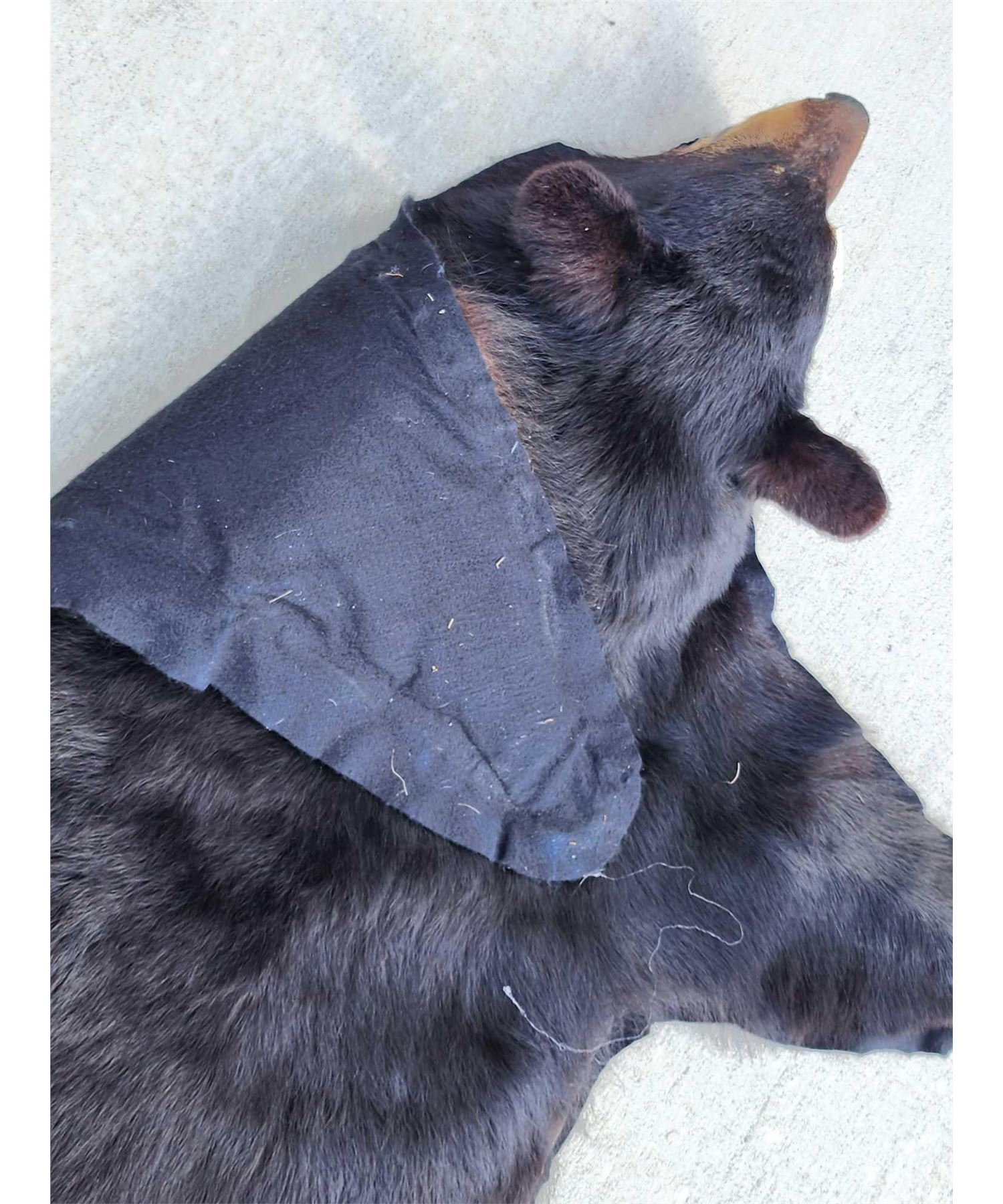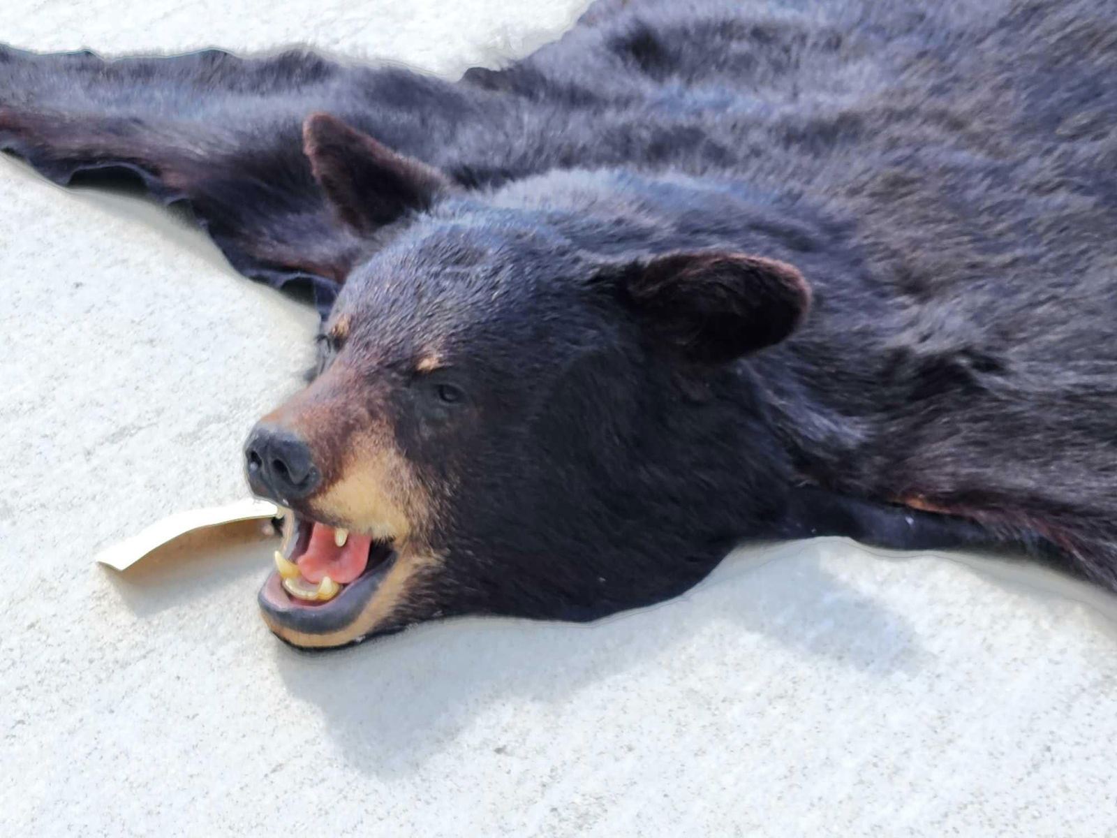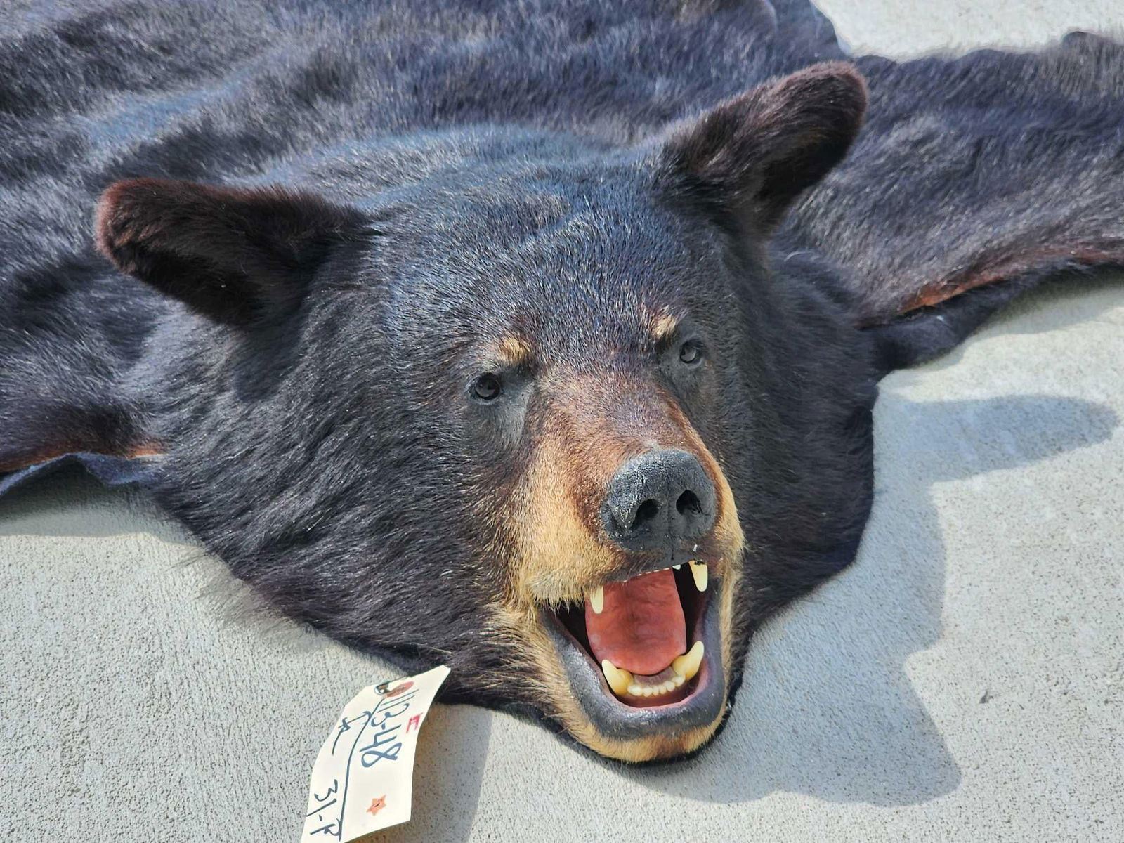 113.48 Jet black fur big head claws intact felt backing about 75" long x 66" wide