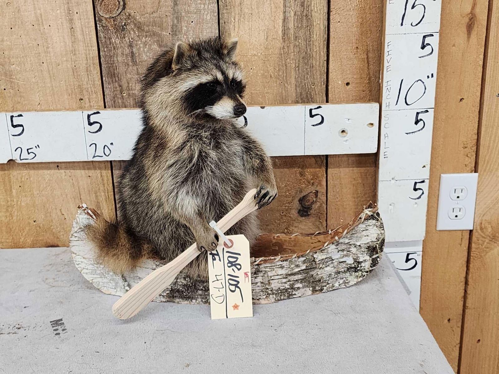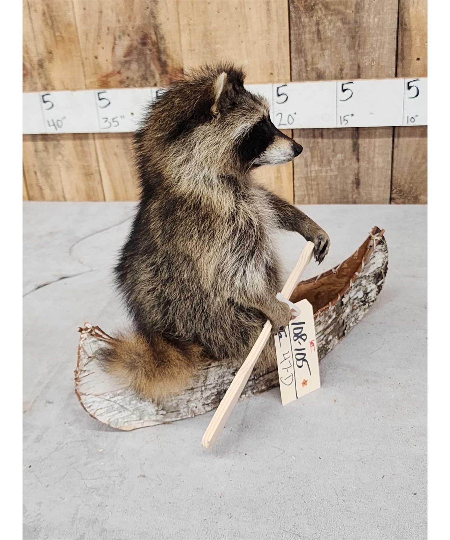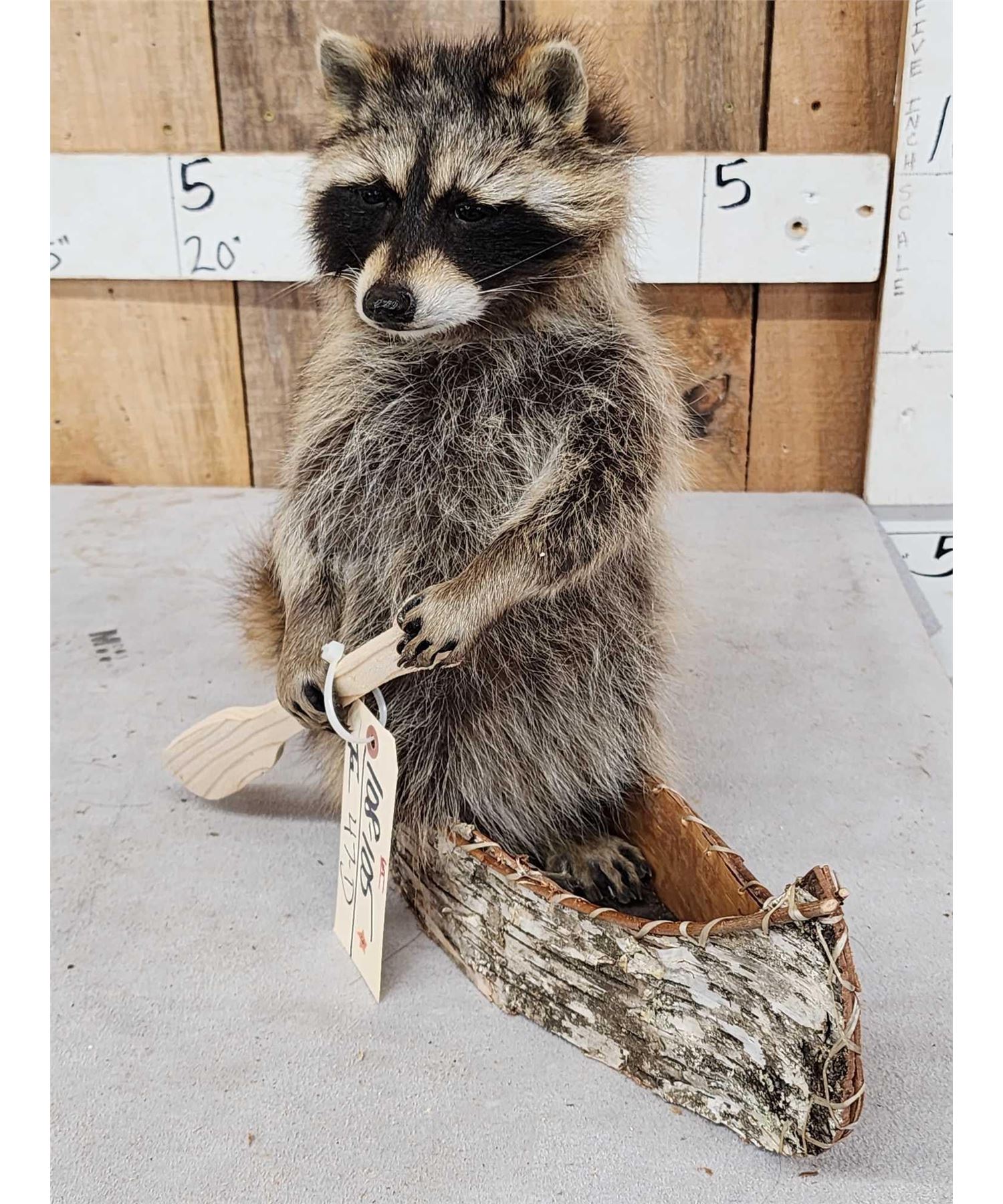Lot 47D Raccoon In A Birch Bark Canoe Taxidermy