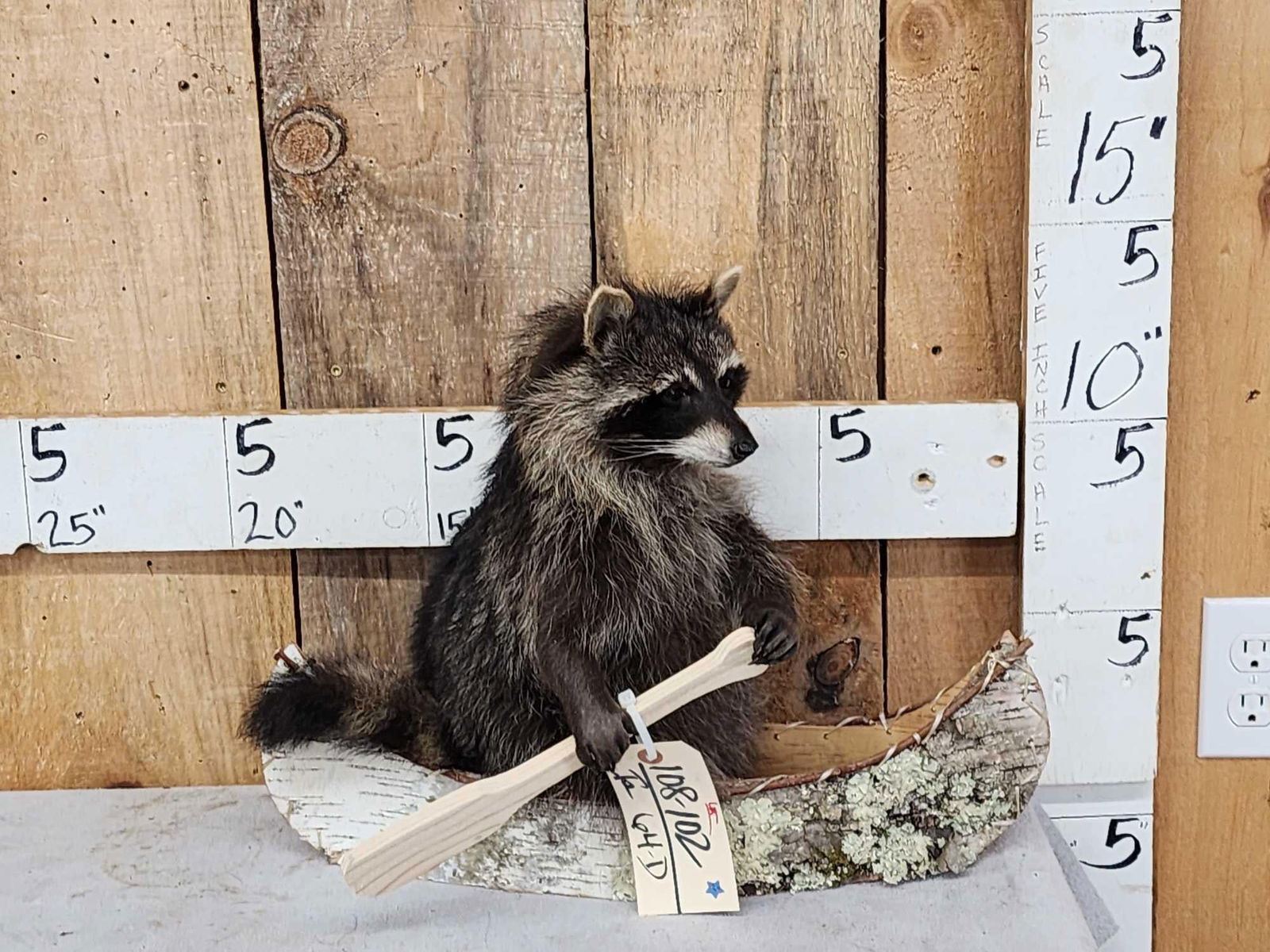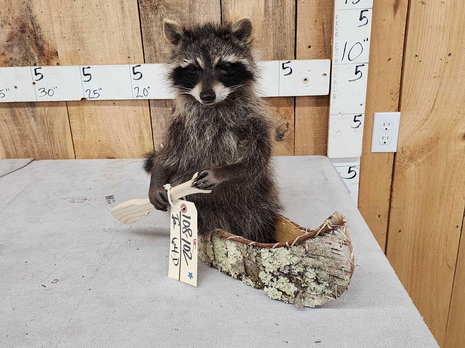 Lot 64D Raccoon In A Birch Bark Canoe Taxidermy