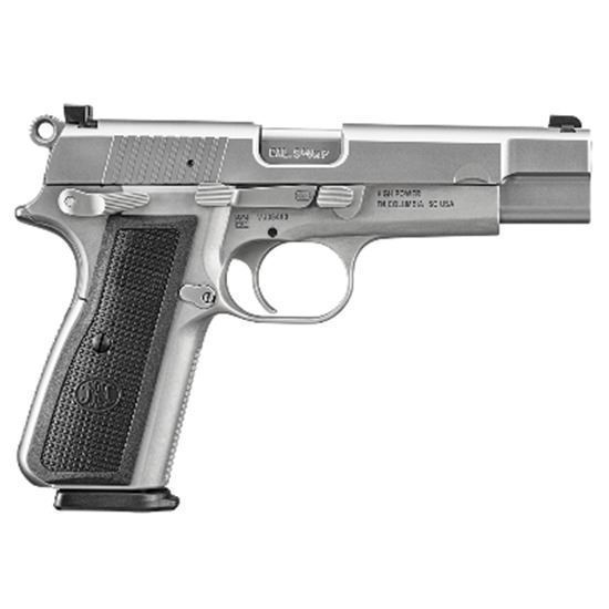 At 40-oz., the robust design keeps the signature rake of the dust cover and long arm slide release, adding ambi-controls for instinctive operation. An extended beavertail and raised hammer fit perfectly in hand. The FN High Power takes down instantly for maintenance, deletes the magazine disconnect, and ensures that most modern factory loads feed smoothly over the polished ramp of the cold hammer forged barrel.