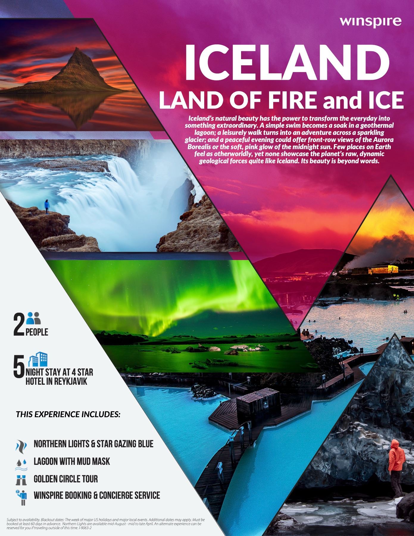 Iceland: Land of Fire and Ice, an exotic travel destination for true adventurers. Experience the Northern Lights, Blue Lagoon, and Golden Circle Tours, 5-Night Stay for 2.