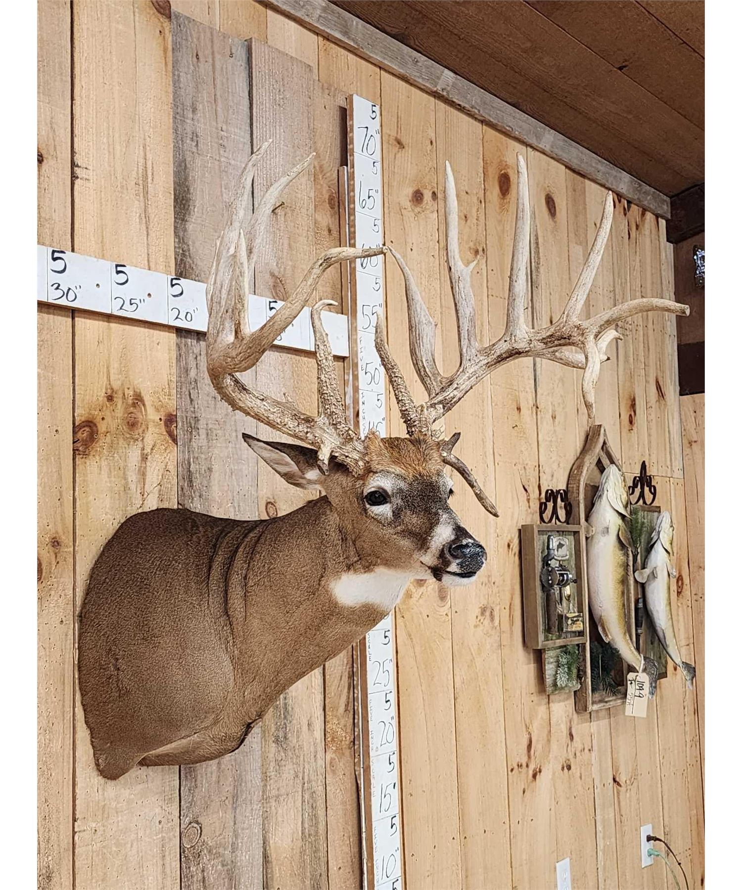 137.28 Towering tines all around impressive brows over 10" heavy beading great color for a preserve Deer unbelievable 33" outside spread on a new Nicely done mount great Taxidermy Artwork nice detail