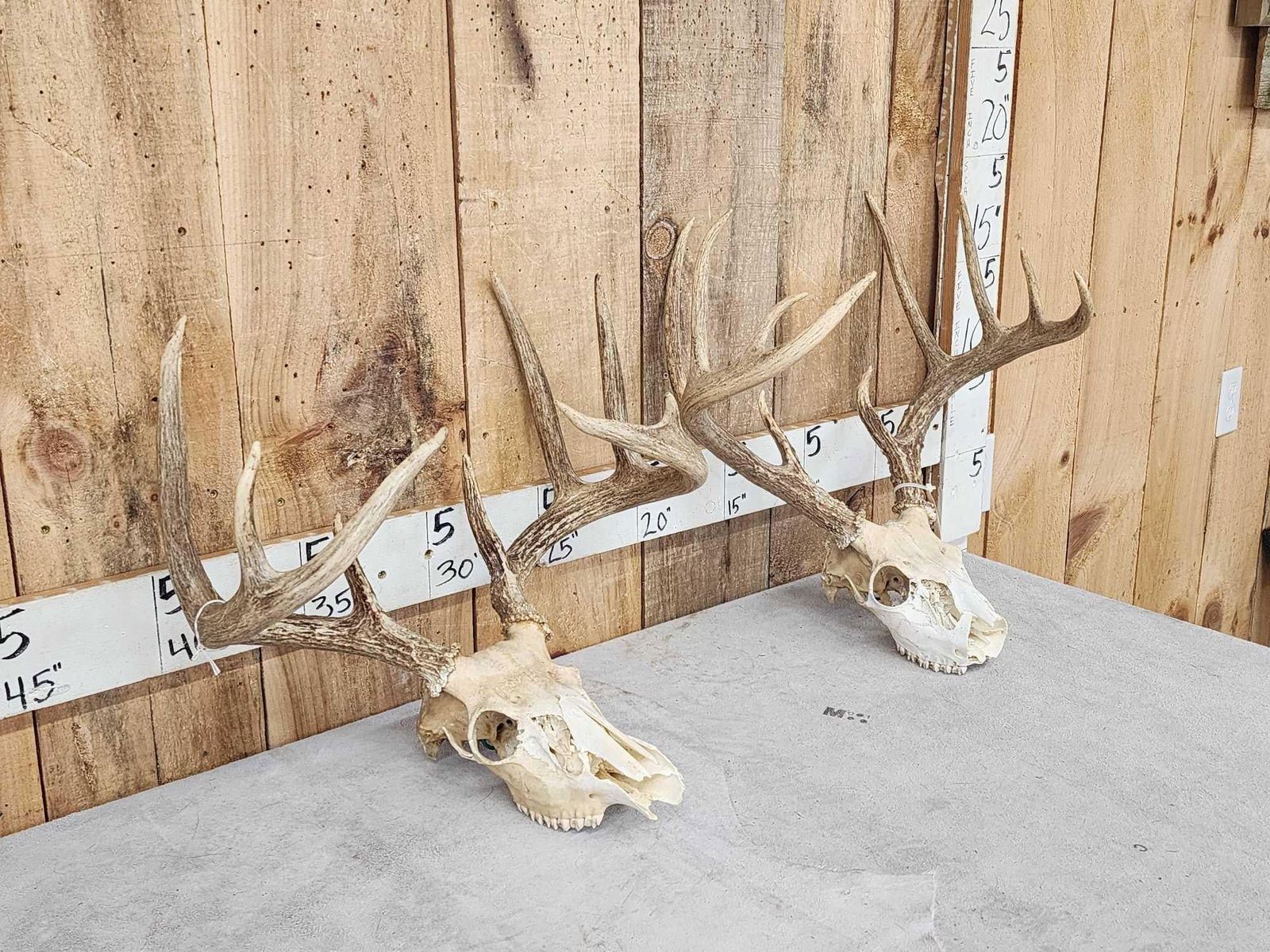 Lot 67B 2 Sets Of Whitetail Antlers On Skull