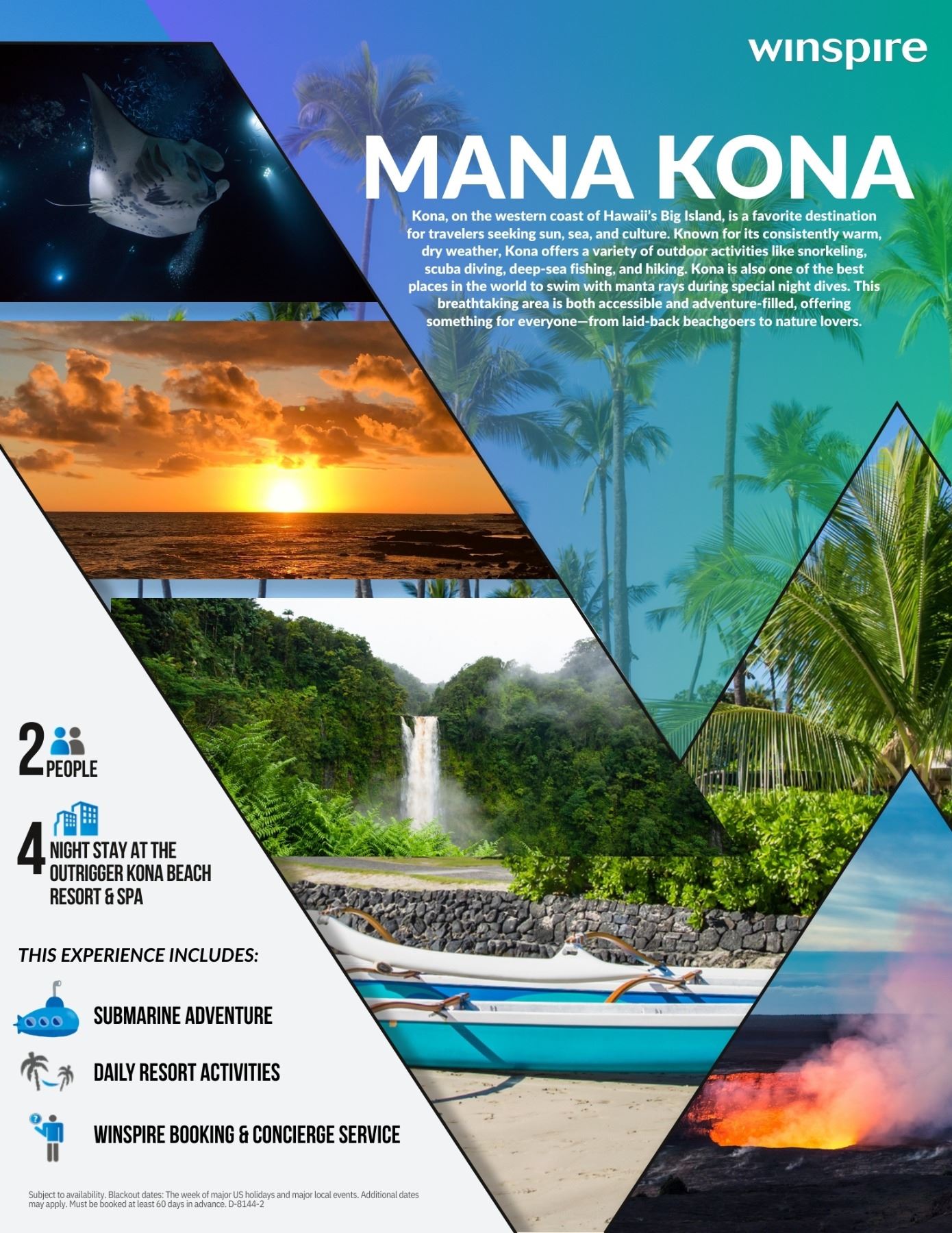 Lot 20 MANA KONA HAWAII 4 NIGHTS for 2 WITH ACTIVITIES