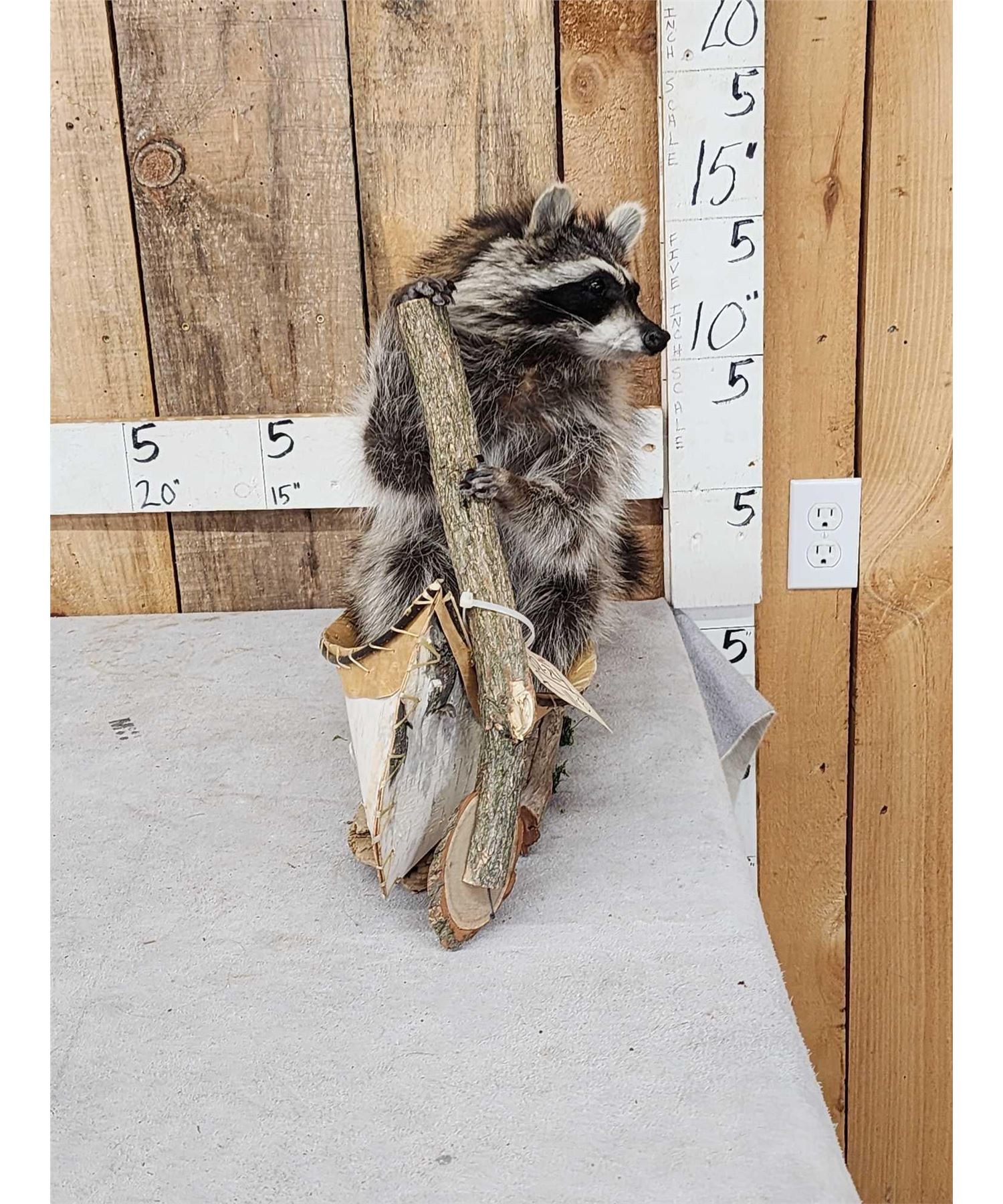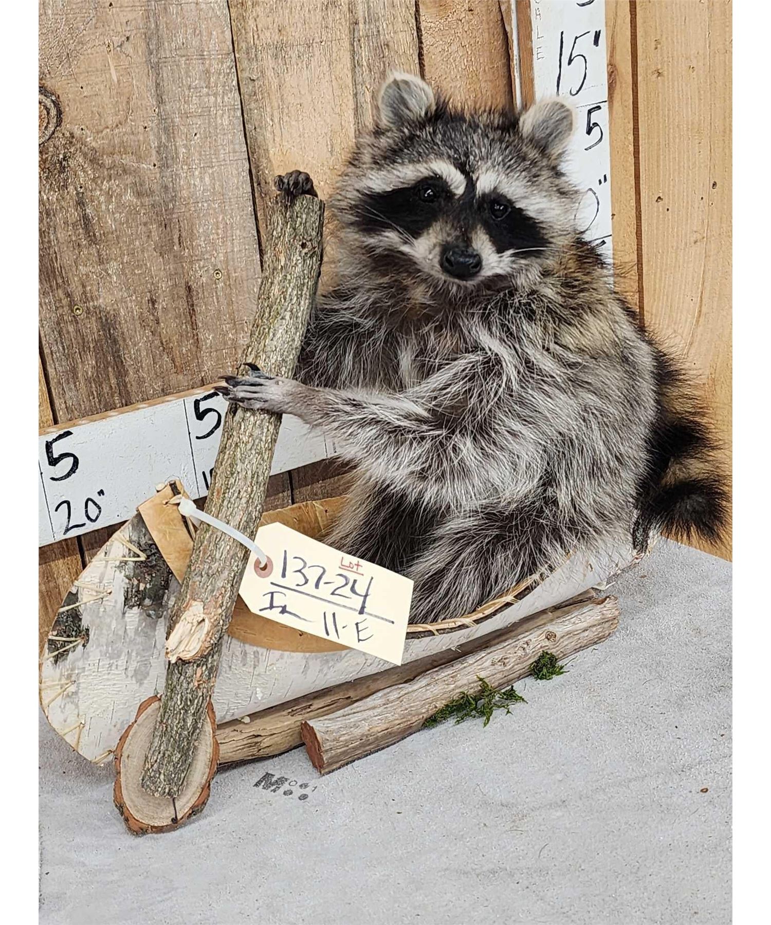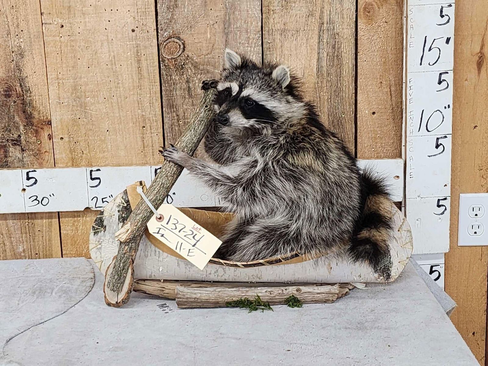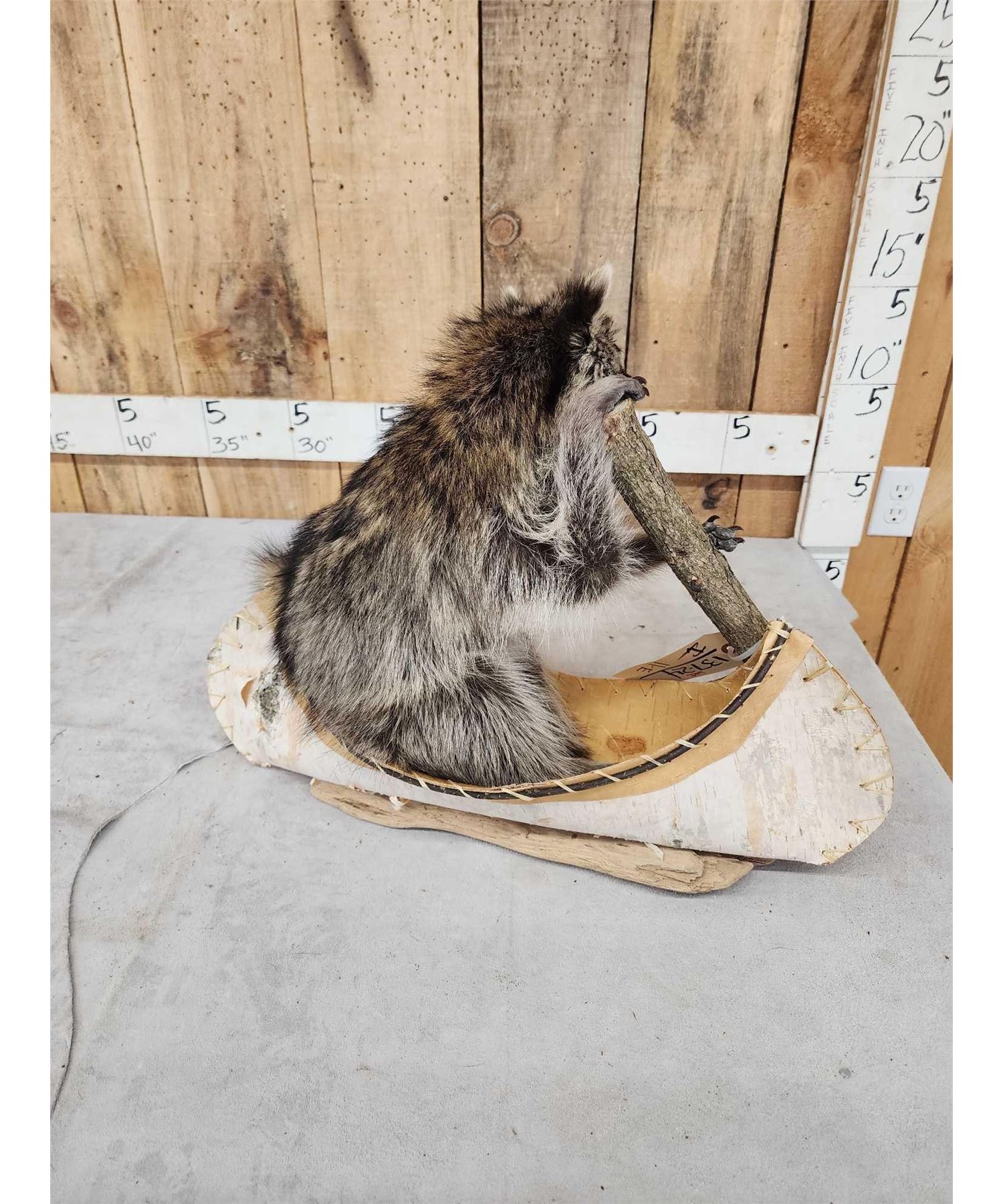 Lot 11E Raccoon In A Birch Bark Canoe Taxidermy
