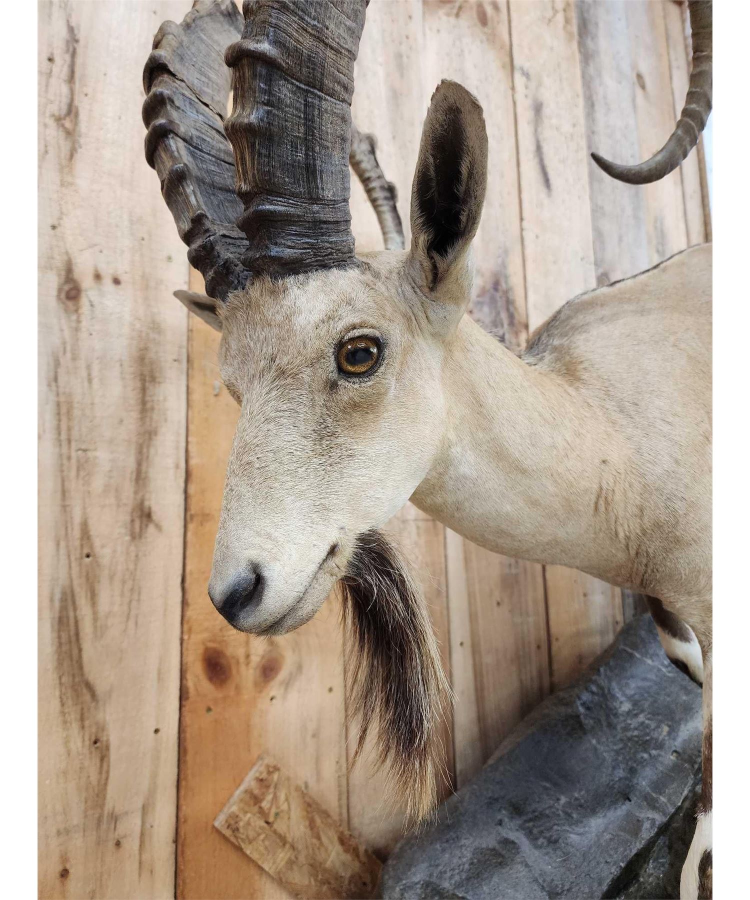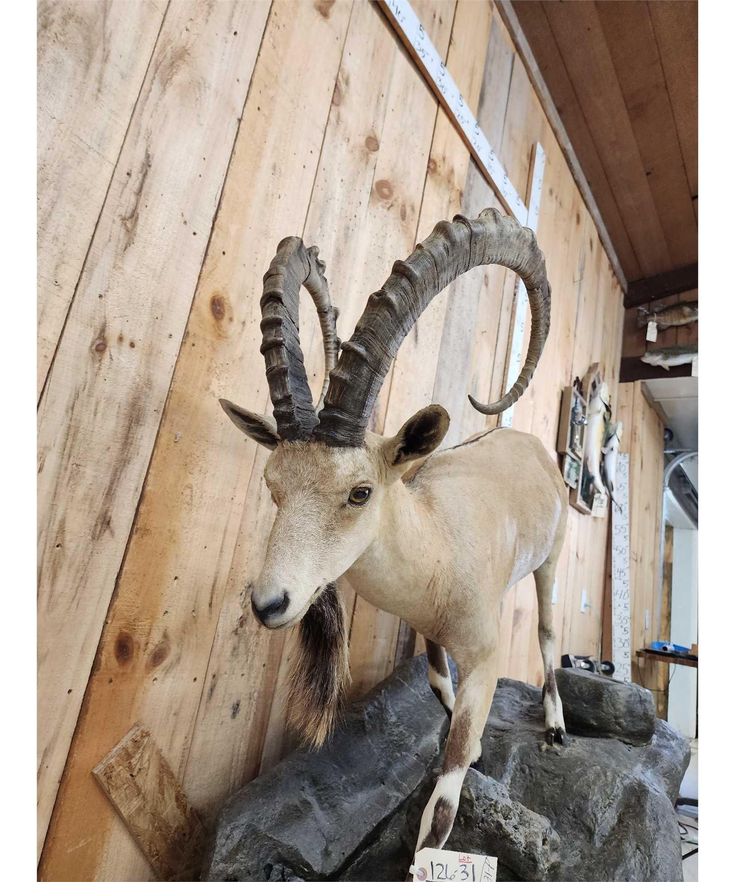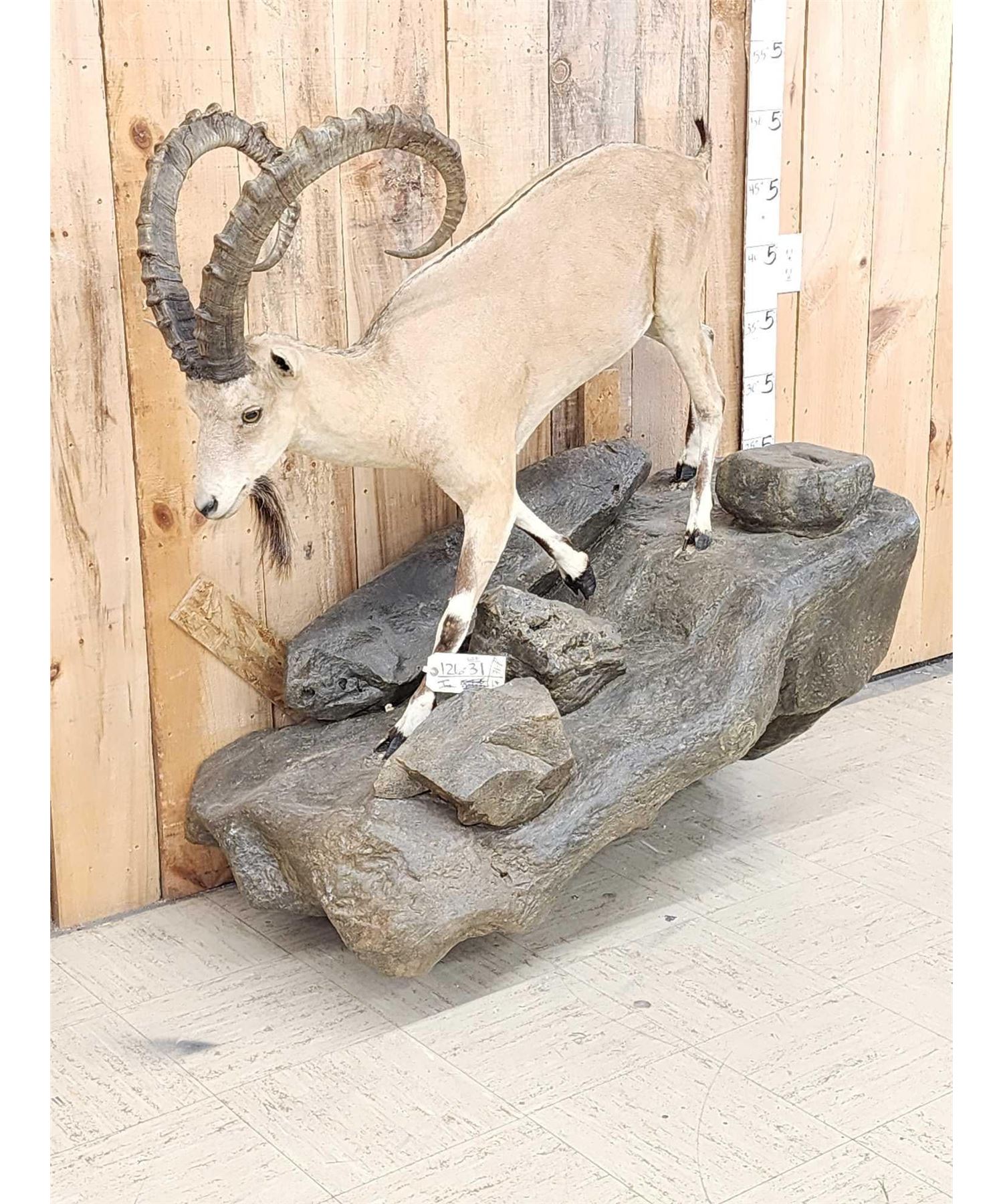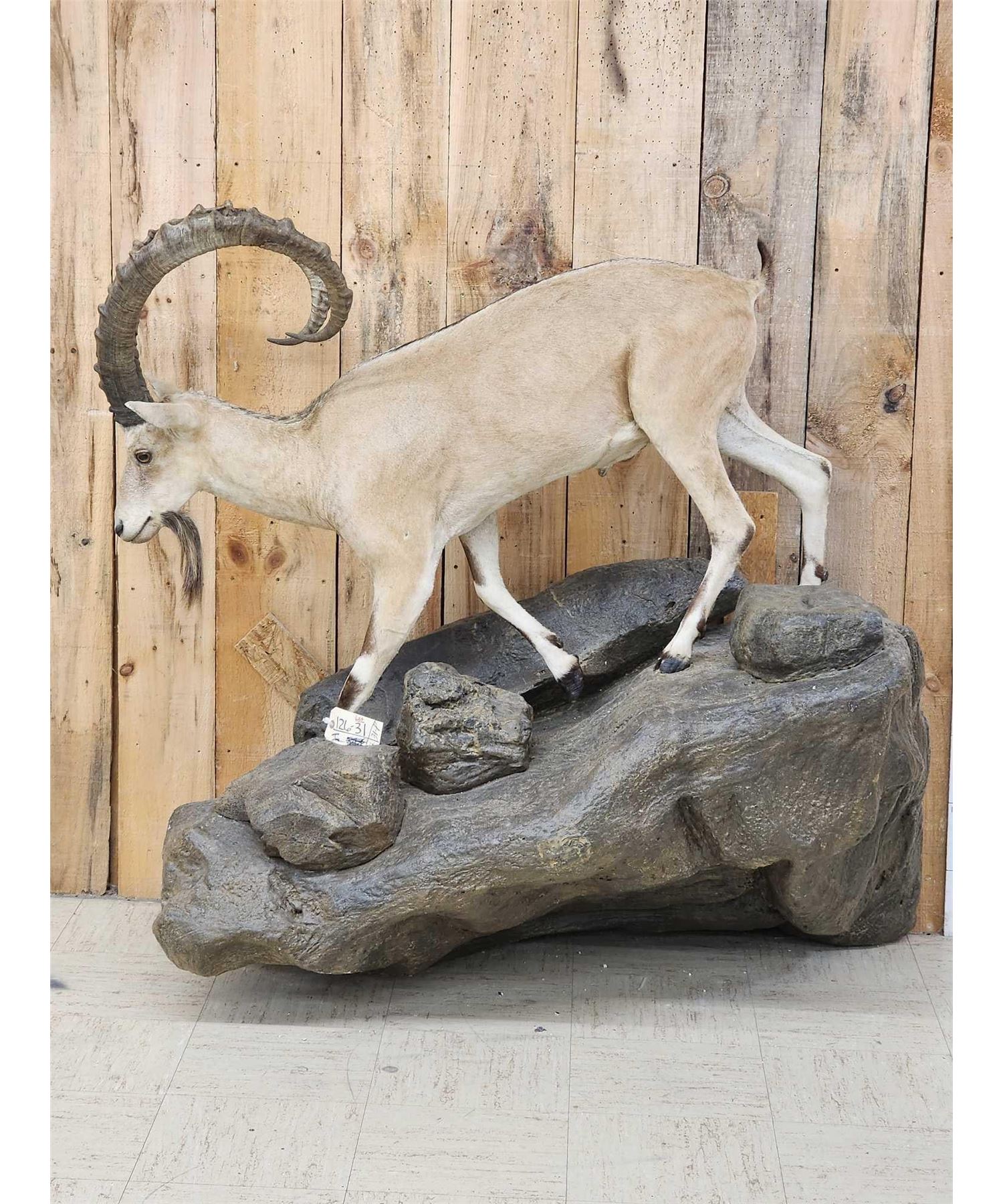 126.31 Great look big horns nice colors on artificial rock hanging base