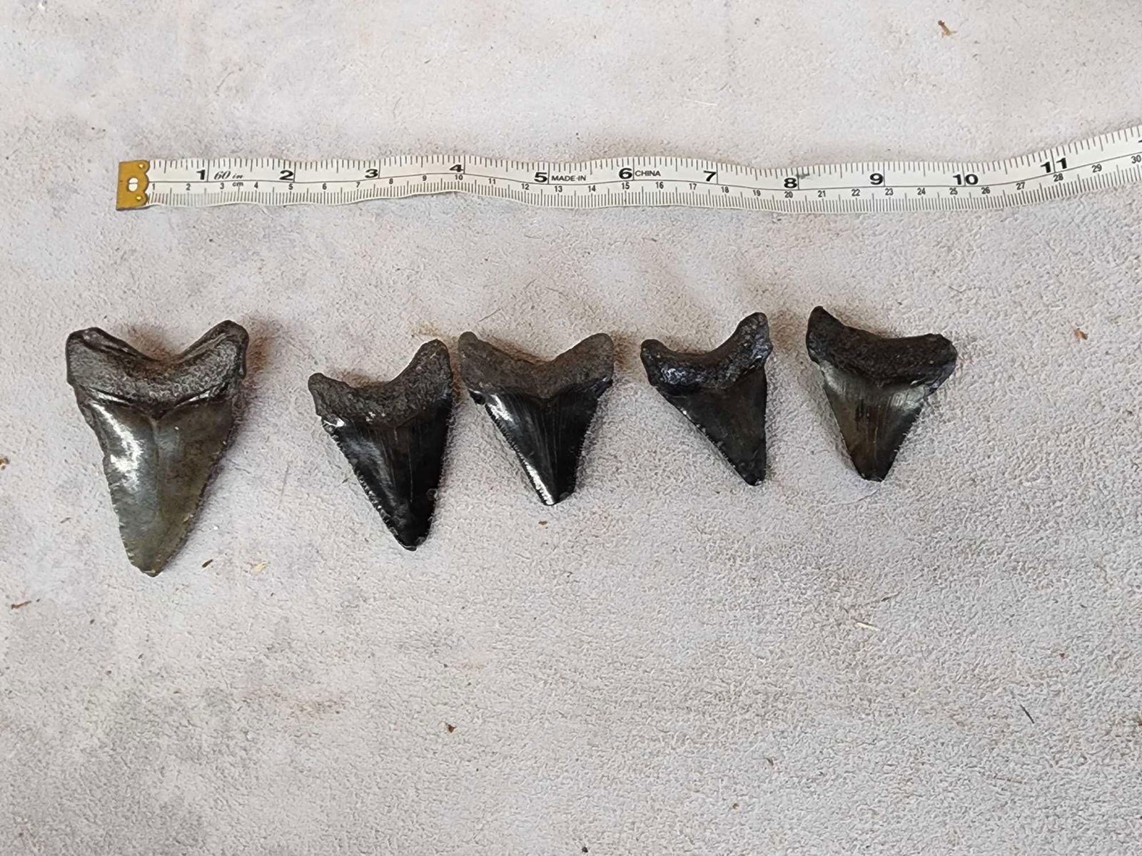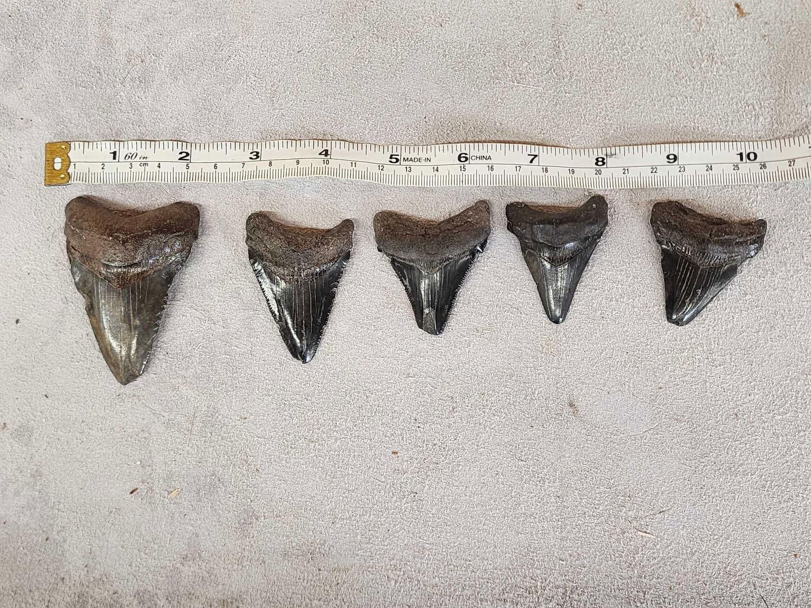 Lot 50B 5 Fossilized Megalodon Shark Teeth