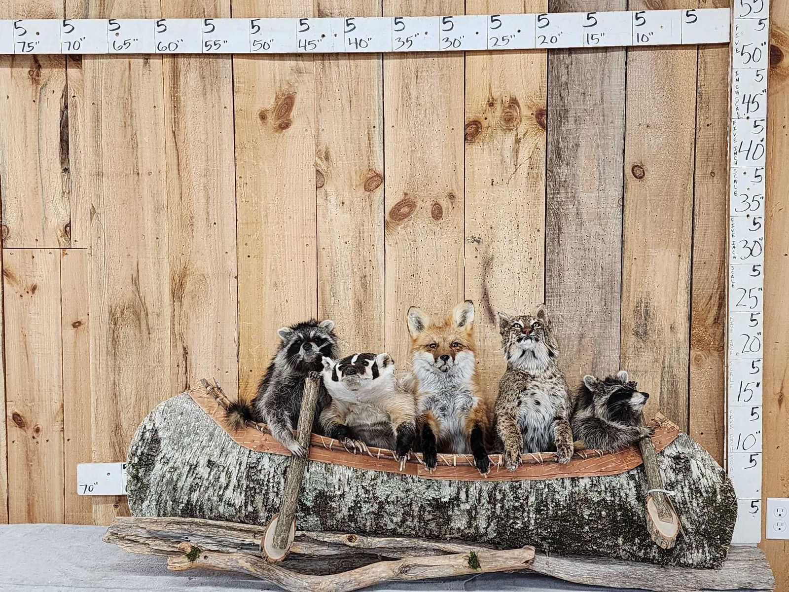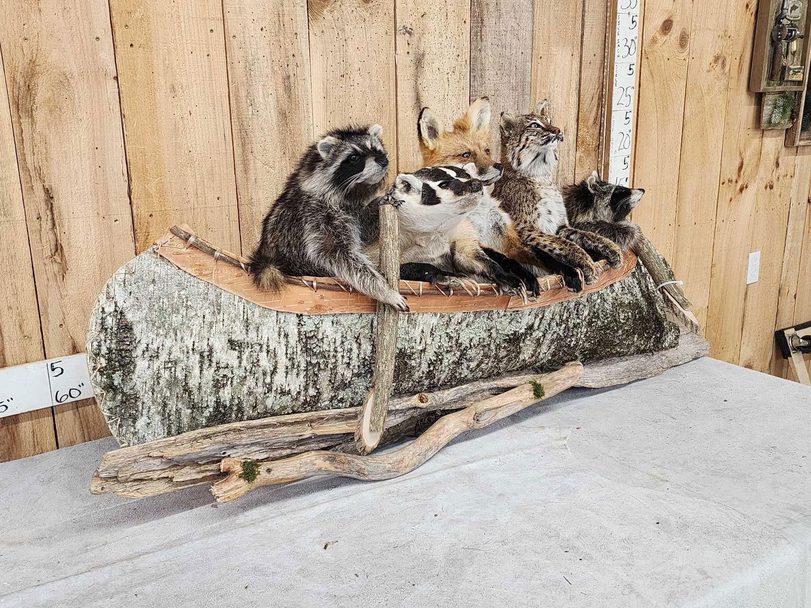 Lot 54F Noah's Ark 5 Critters In A Birch Bark Canoe Taxidermy