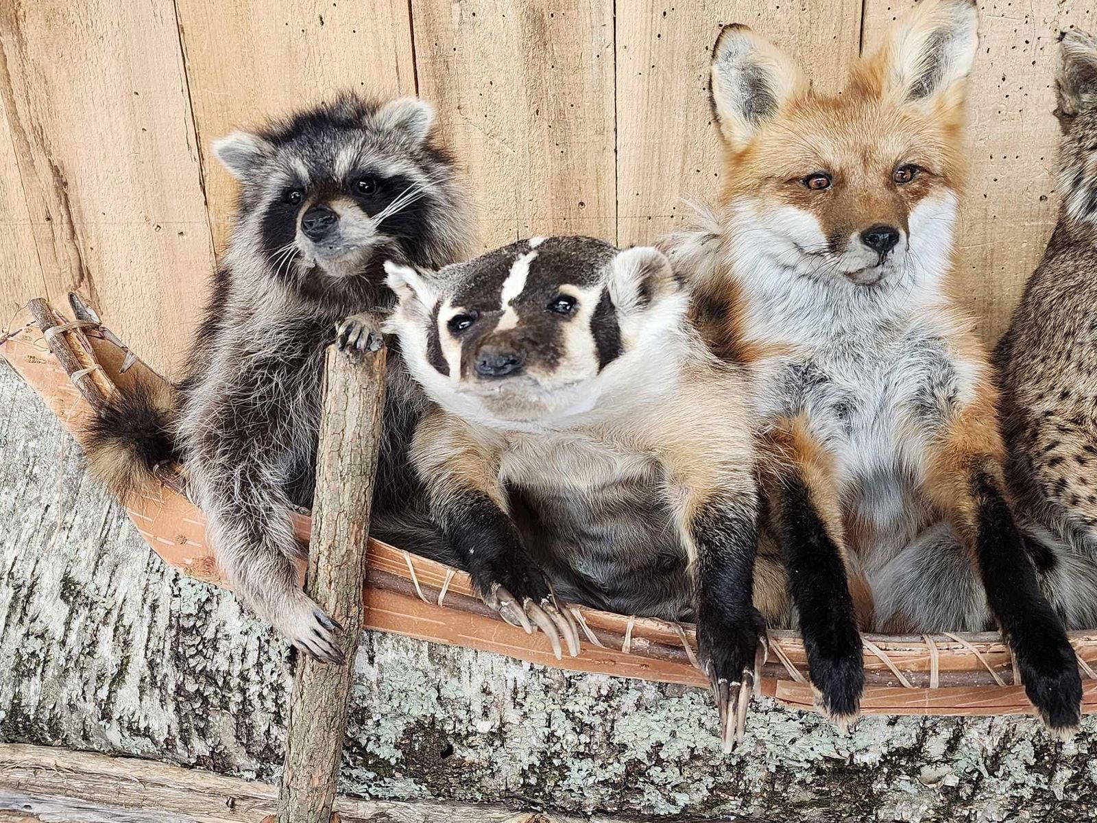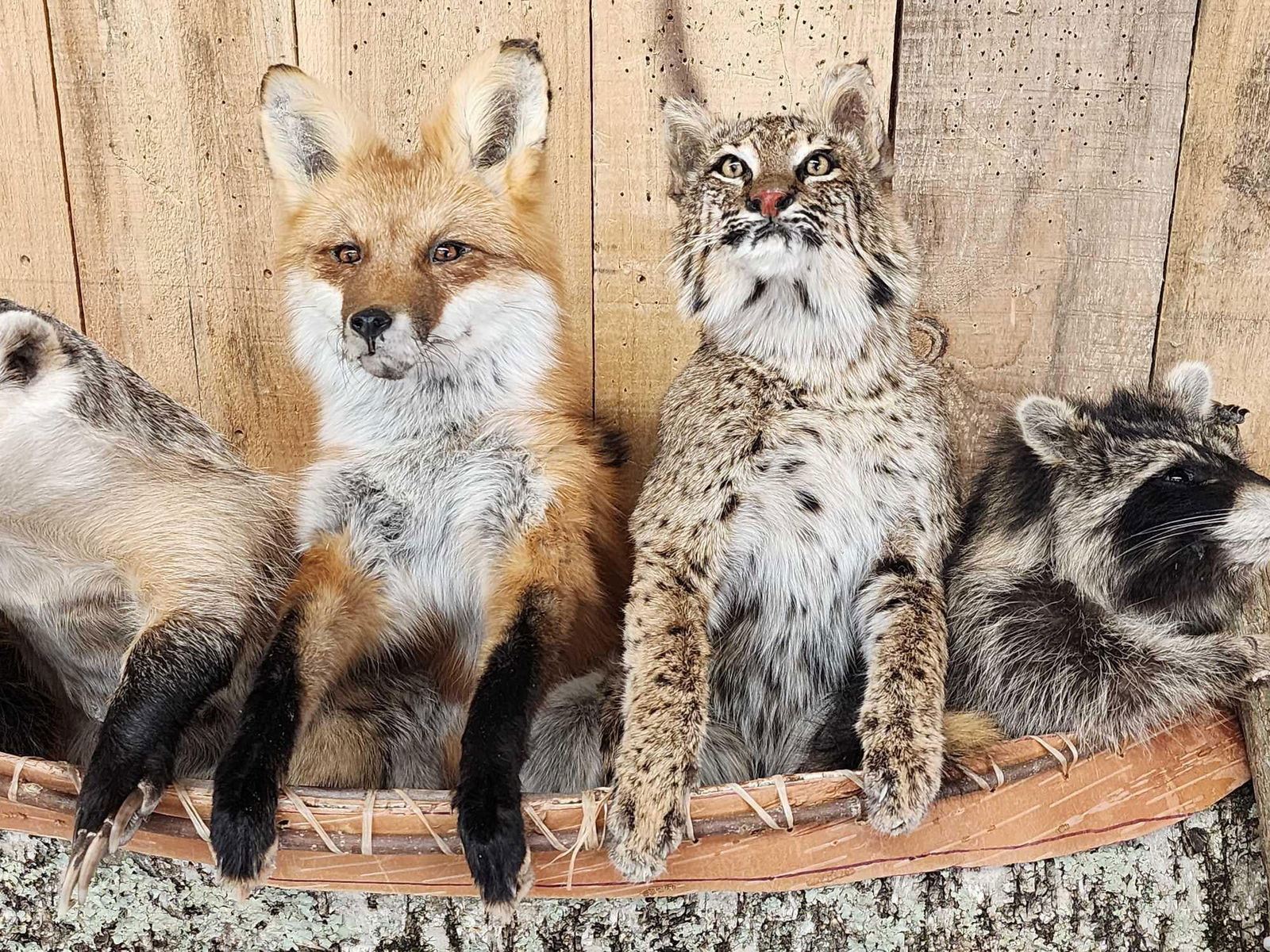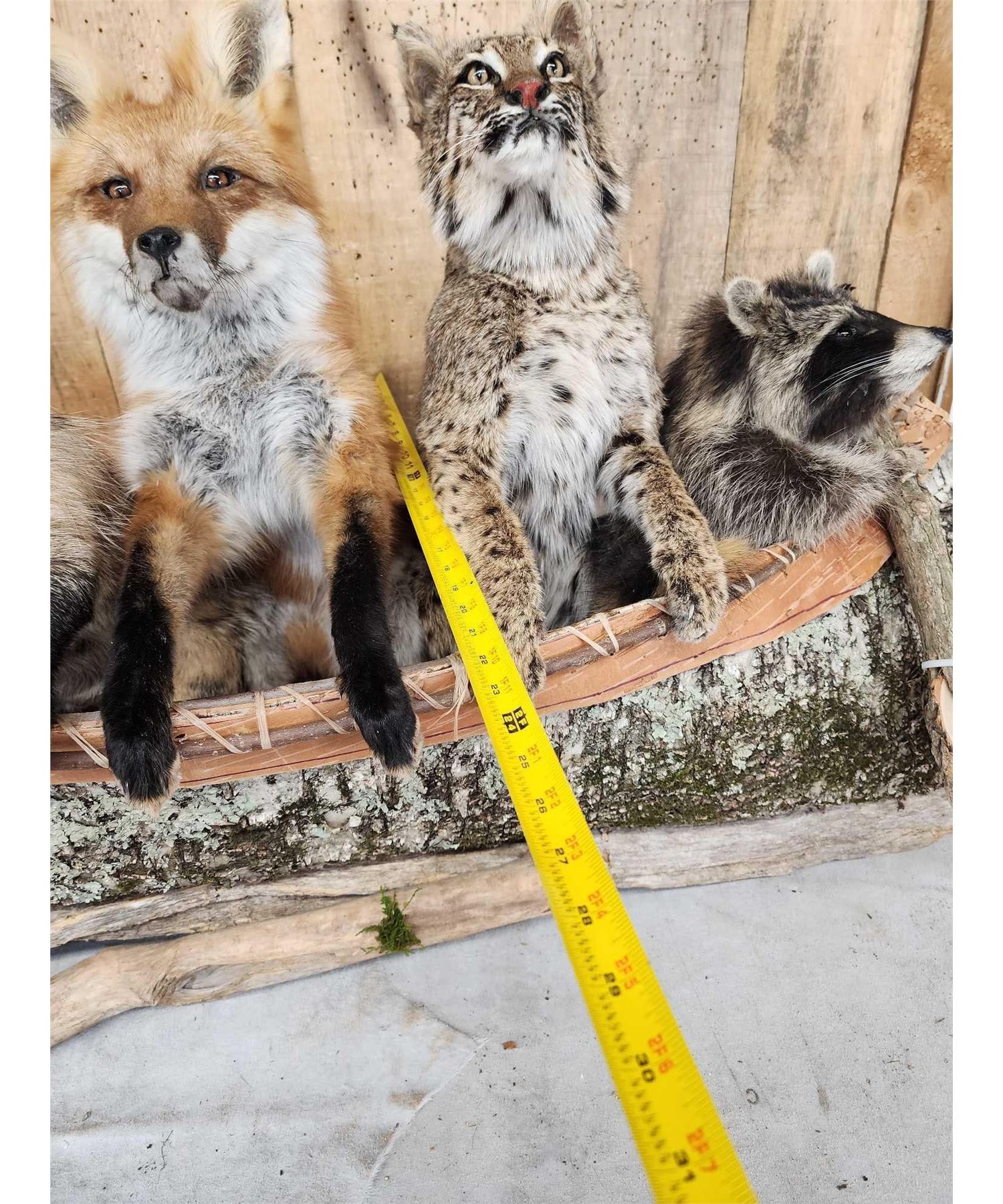 137.40 Brand new mount featuring Bobcat Red Fox Badger 2 Raccoons free standing mount put it anywhere in your display!