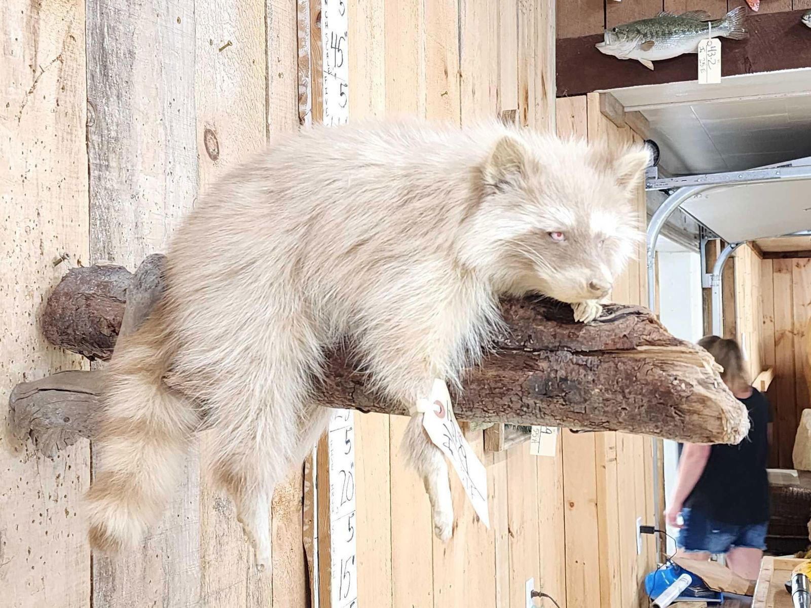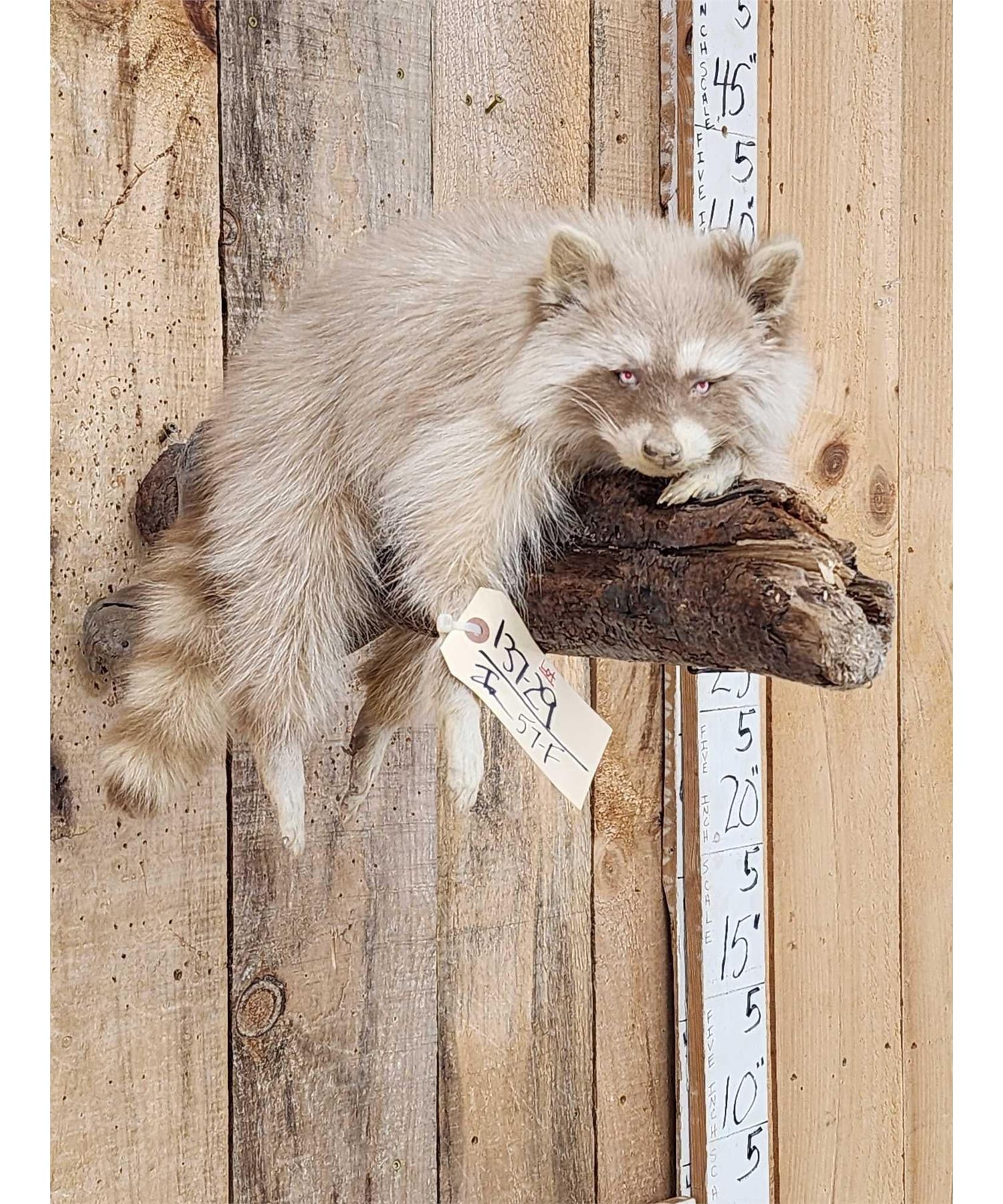 Lot 57F Albino Raccoon Relaxing On A Limb Full Body Taxidermy Mount