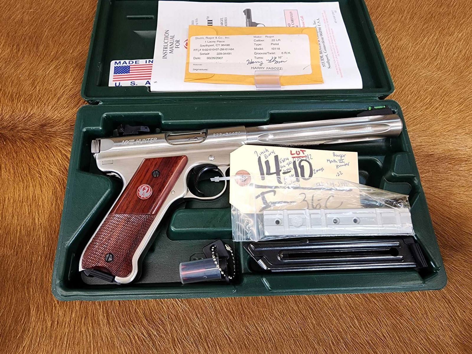 Lot 36C Ruger MKIII Hunter. 22 Semi Auto Pistol