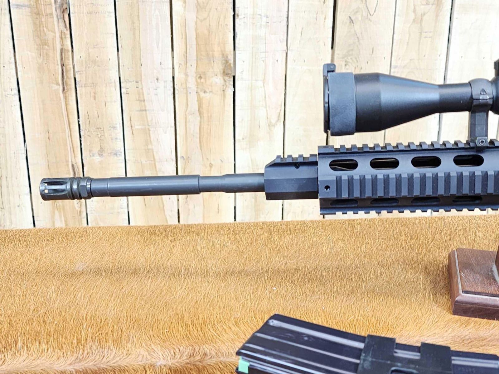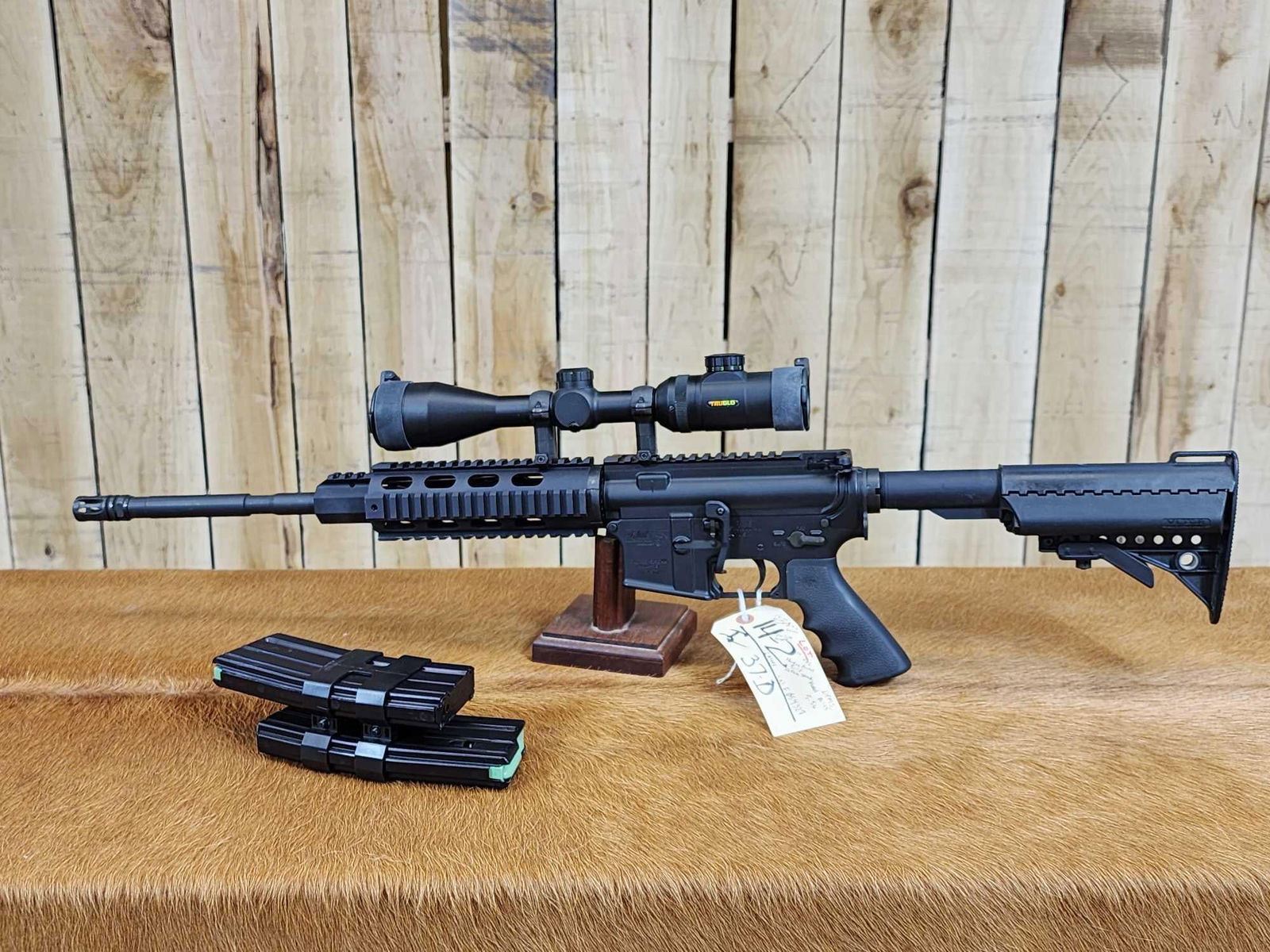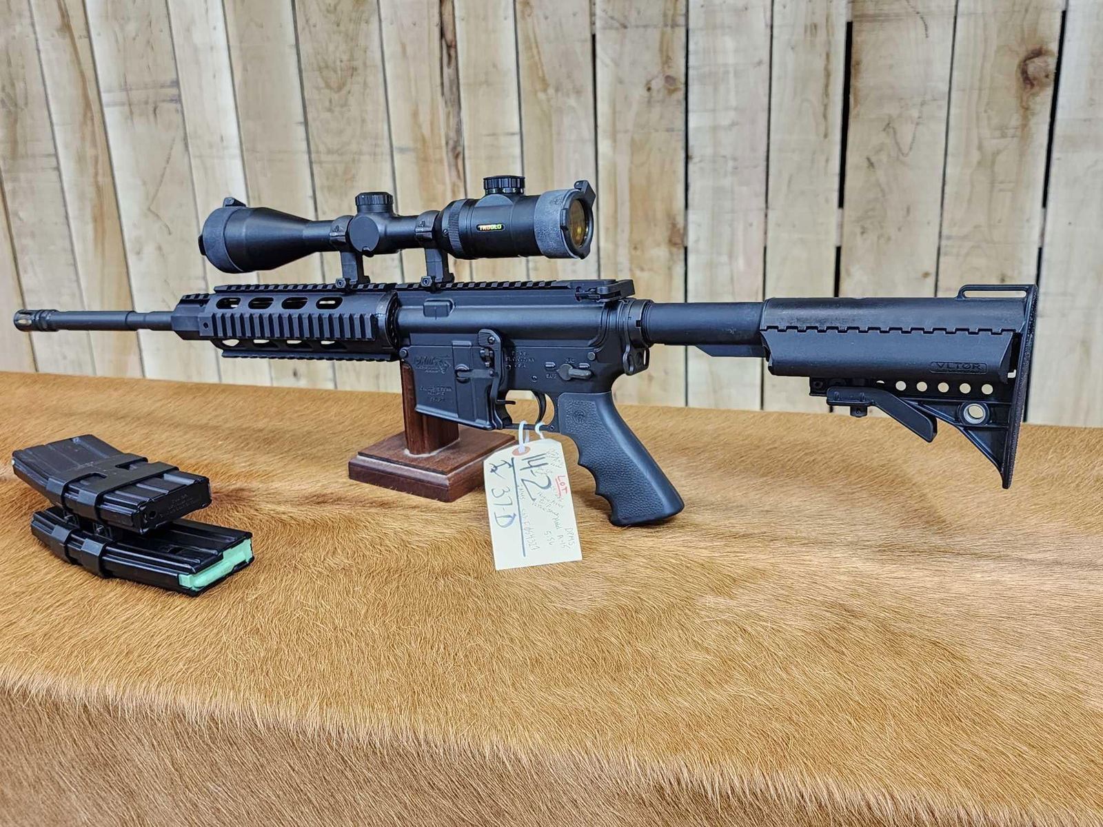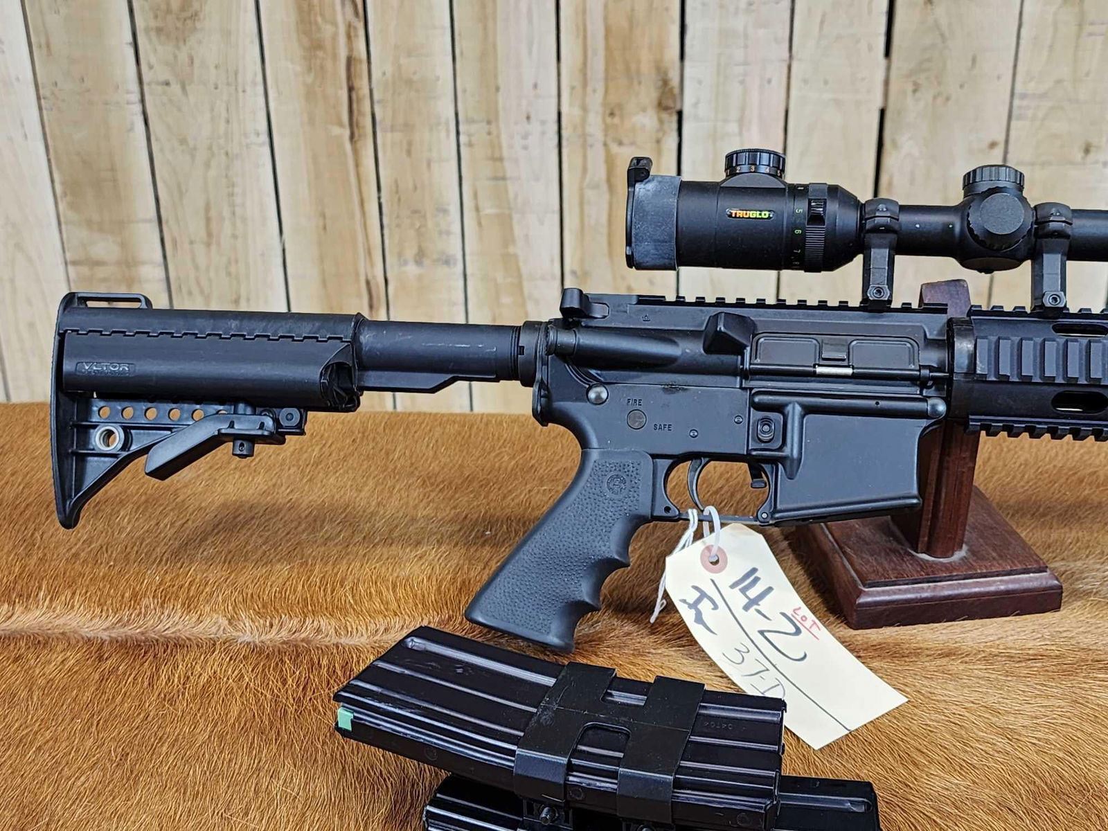 14.2 VLTOR Stock Hogue Pistol grip B.A.D. Lever 18" barrel Shiny bore good rifling 1 in 9 twist 3 mags Tru Glo scope SN F054327
