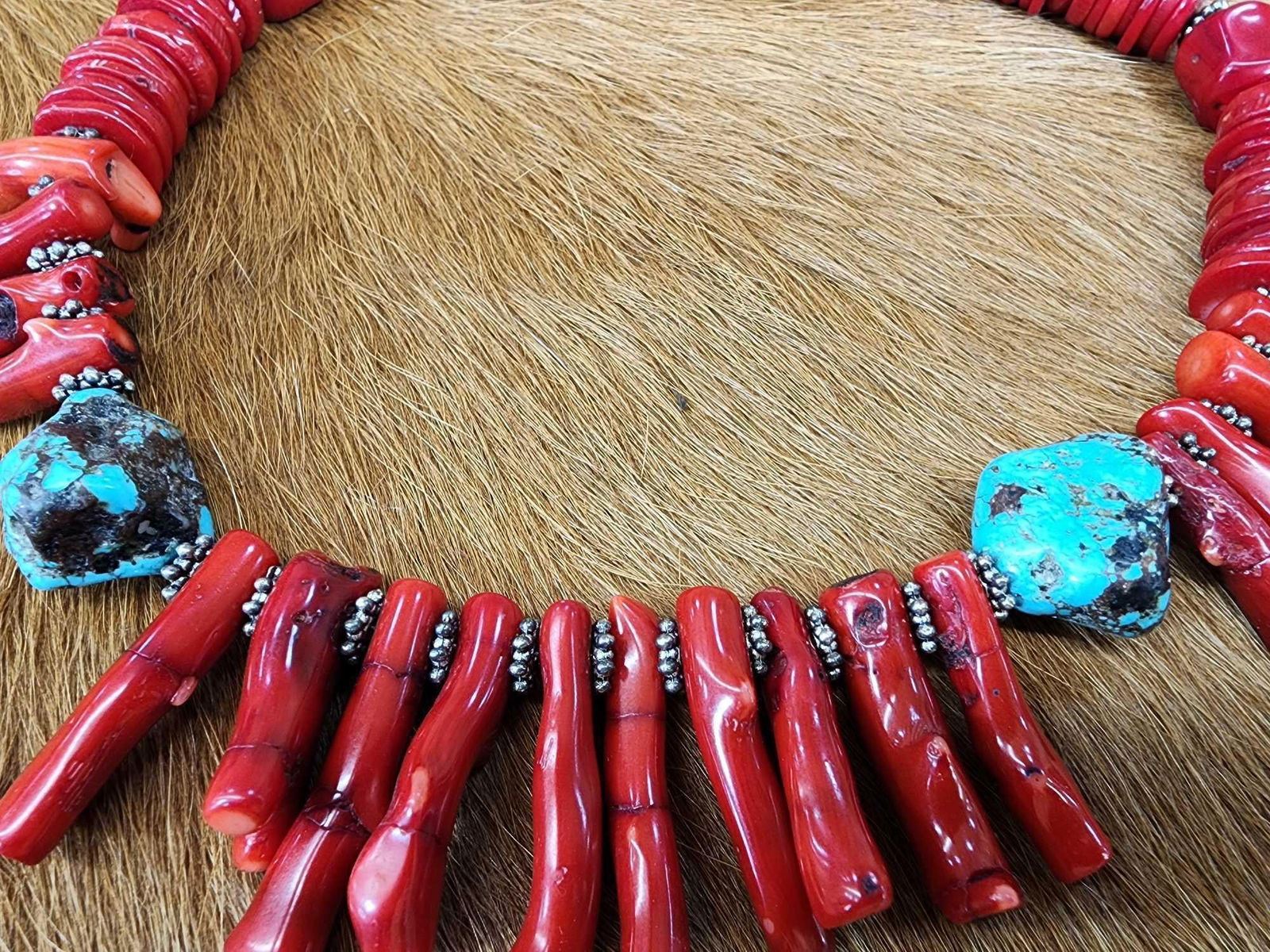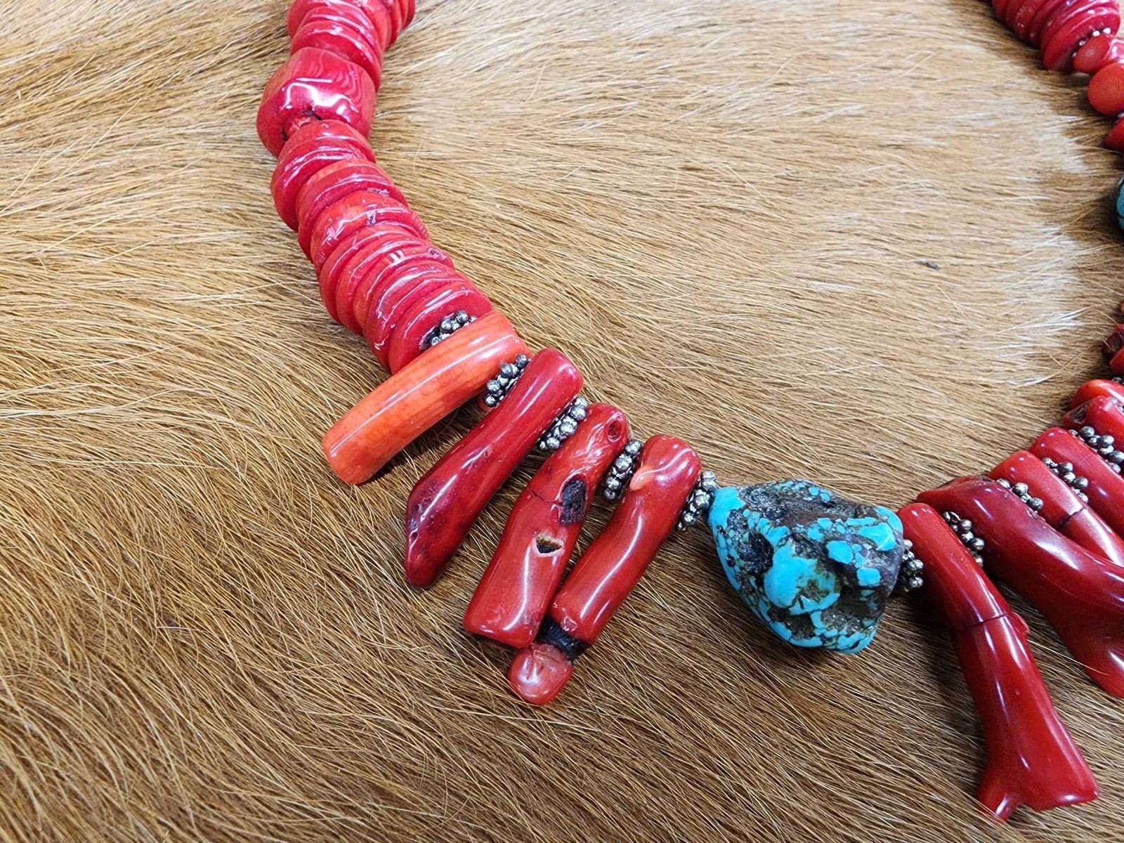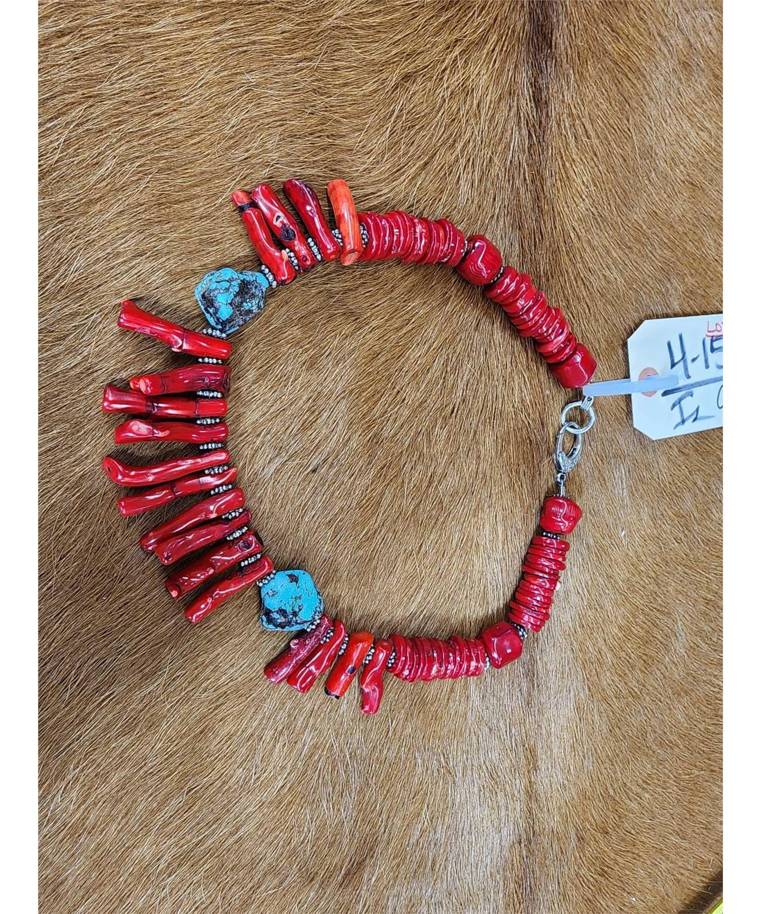 Lot 99A Native American Style Eed Coral & Turquoise Necklace