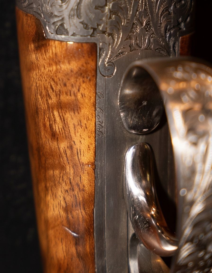 Crafted with a Woodward-styled, Grade 5 Turkish walnut stock, the shotgun showcases exquisite grain and figure, complemented by a long tail and steel grip cap. The firearm is further elevated by deep, full ornamental hand engraving by renowned Master Engraver Gessica Corelli, making it as much a work of art as it is a sporting arm.