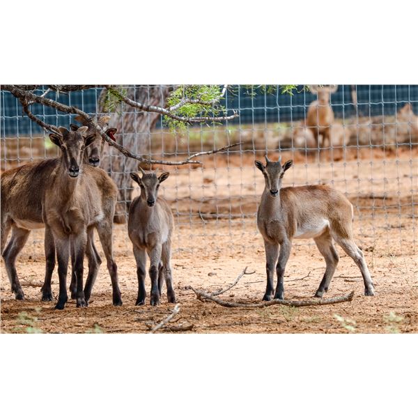 *UPDATED: 8/3/2025** Three mature breeding female Himalayan Tahr with two female 2025 offspring. This lot will sell 5Xs the money. This is a great breeding group of Tahr that are calm and pen raised on our Pearsall ranch. Buy the breeding male at lot #787 and take home the whole established herd.