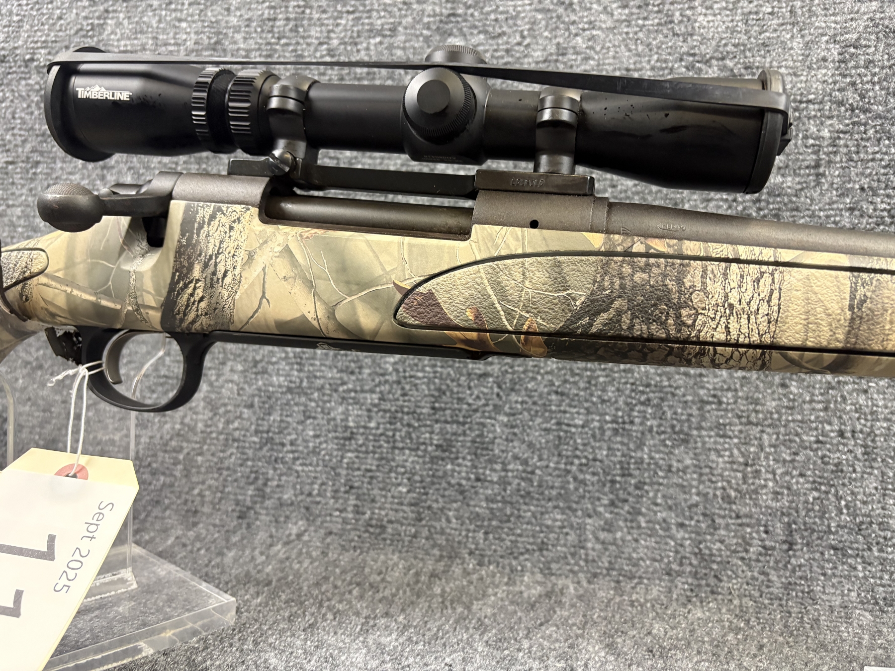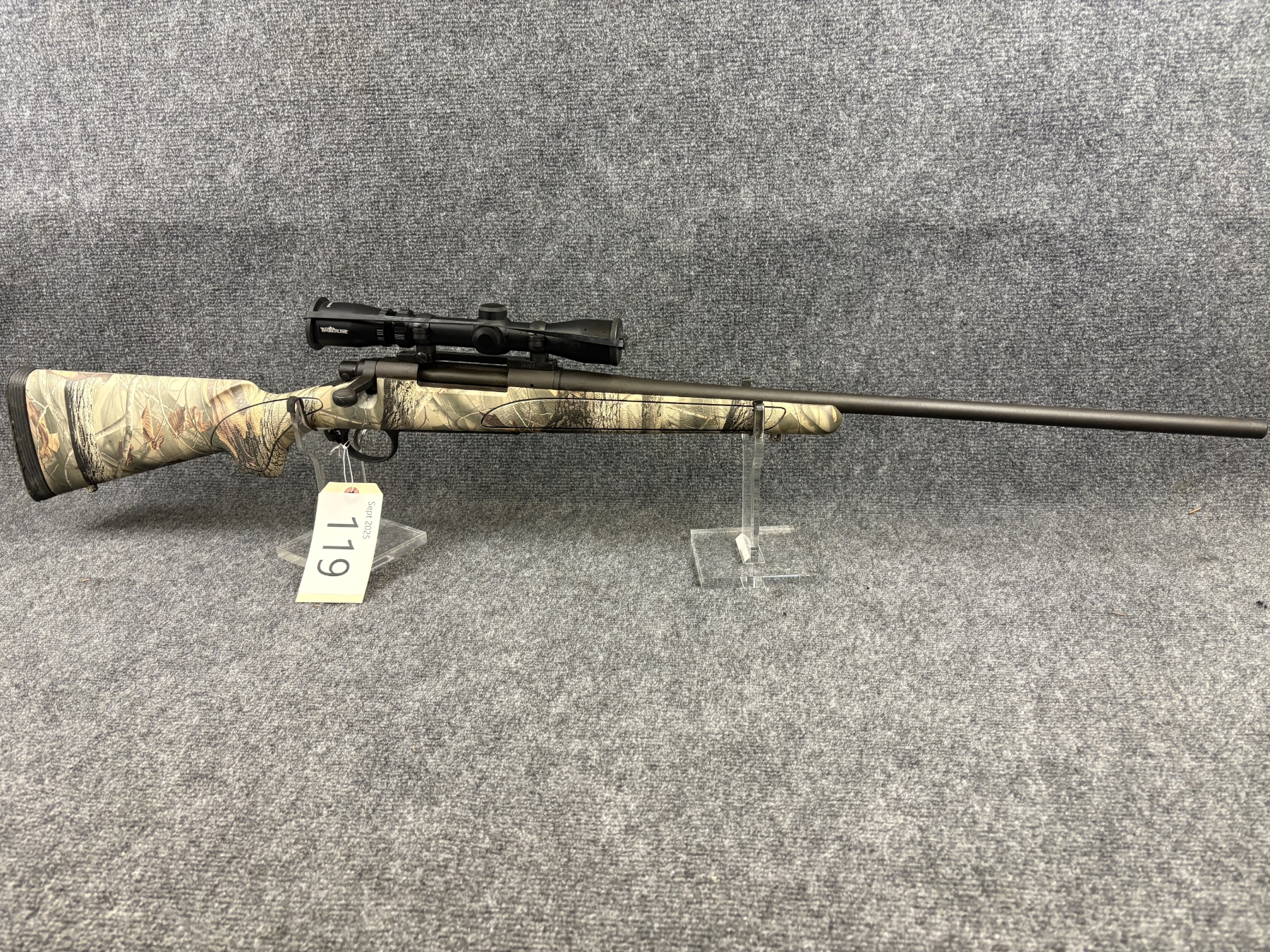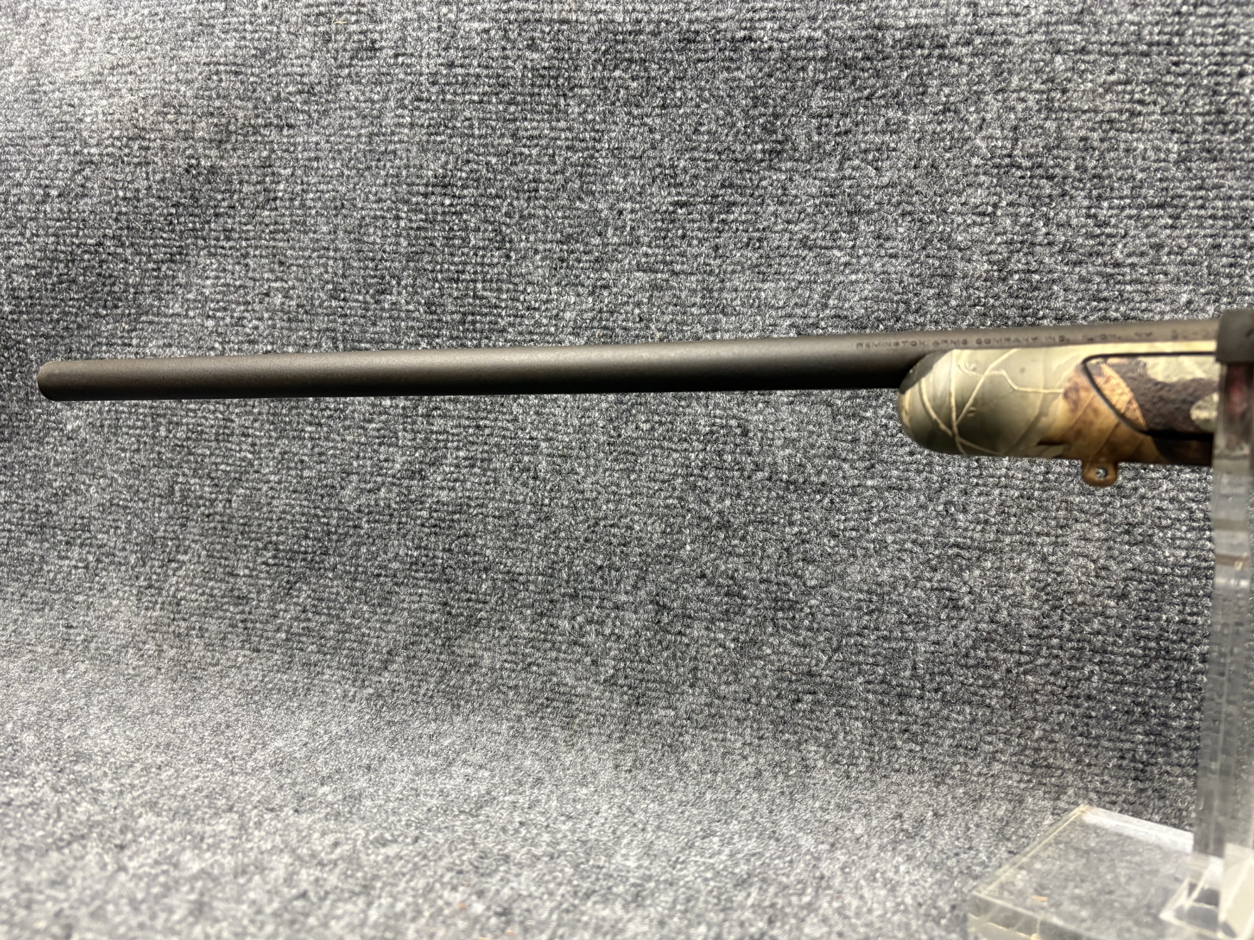 Only shallow surface rust on barrel. Composite camo stock. Burris 3-8x scope with Boone and Crocket aperture.