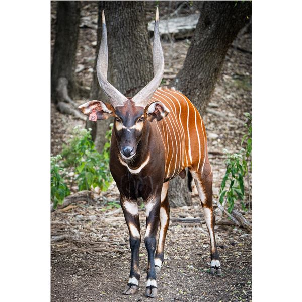 One mature Bongo bull born 1/26/2021 and measuring 32.5". This is an exceptional and symmetrical Bongo bull that is calm, young, and still growing. He is currently located in Boerne