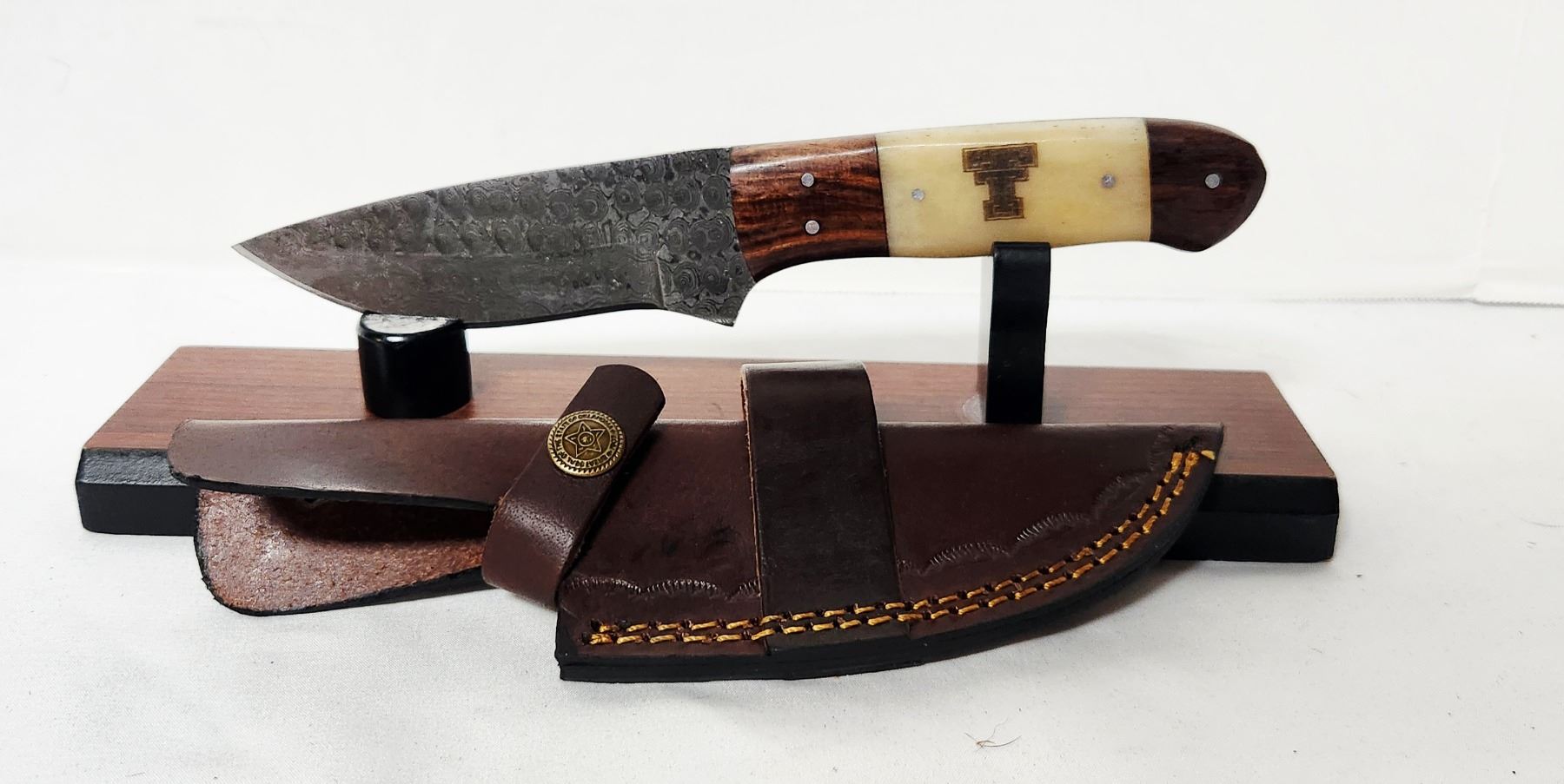 Lot 22 Texas Tech-Damascus Steel knife & sheath