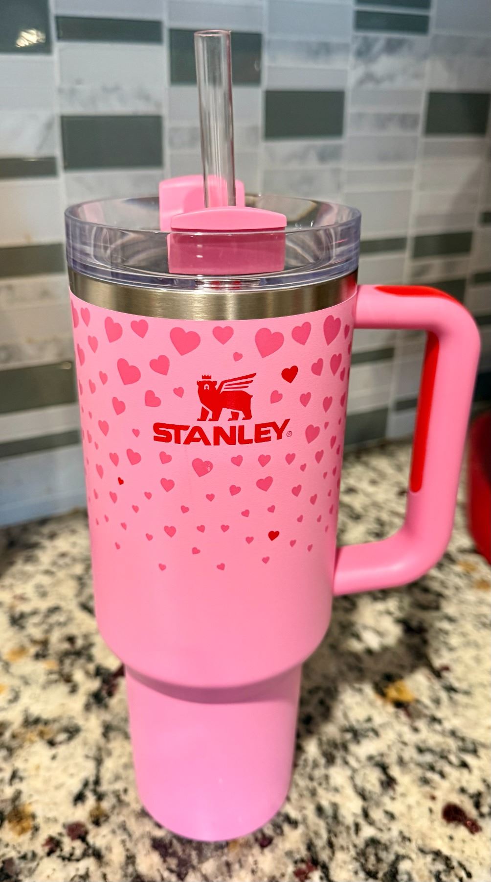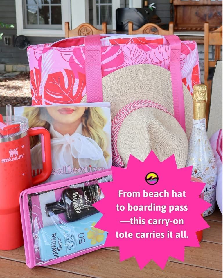 Lot 39 Solmate Beach tote bag and pink & red Stanley drinking cup