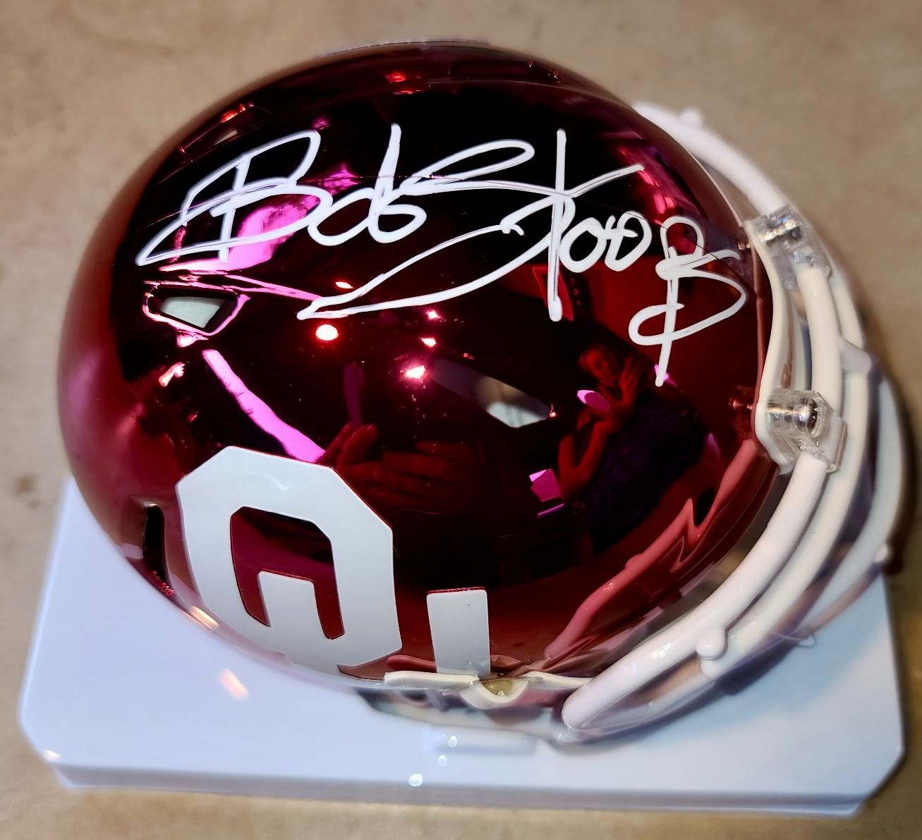 Lot 41 OU Football Mini Helmet signed by Bob Stoops