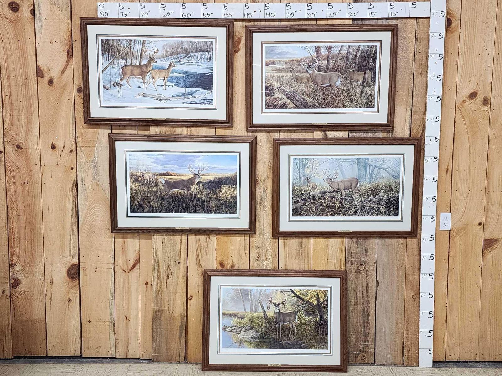 61.71 Includes all 5 prints for one money!Sll signed numbered framed matted with a COA for each one featuring Legendary Whitetail Giants The Jordan Buck , The Missouri Giant , The Hanson Buck , The Monarch's Morning Buck The world Famous Hole In The Horn Buck !