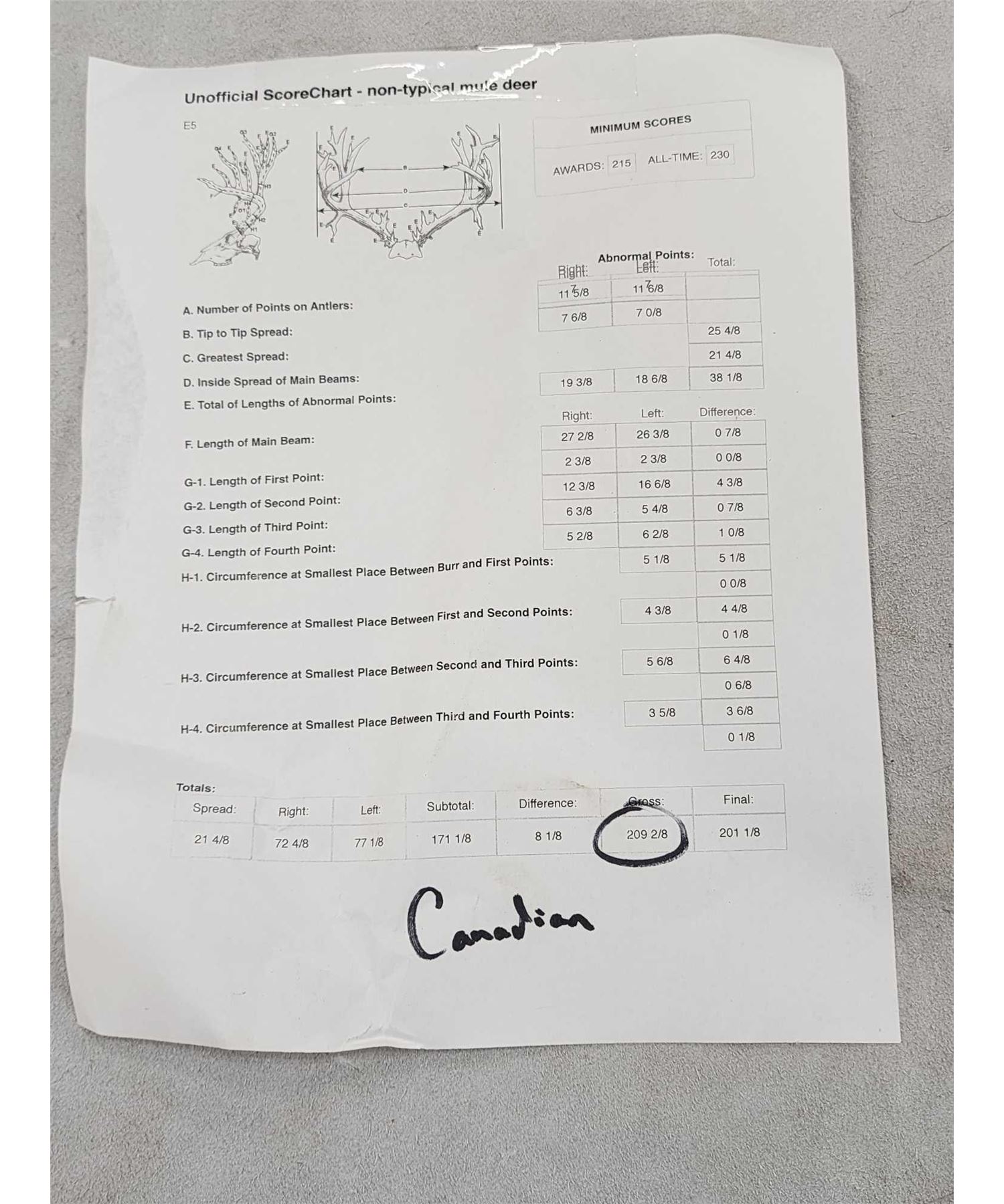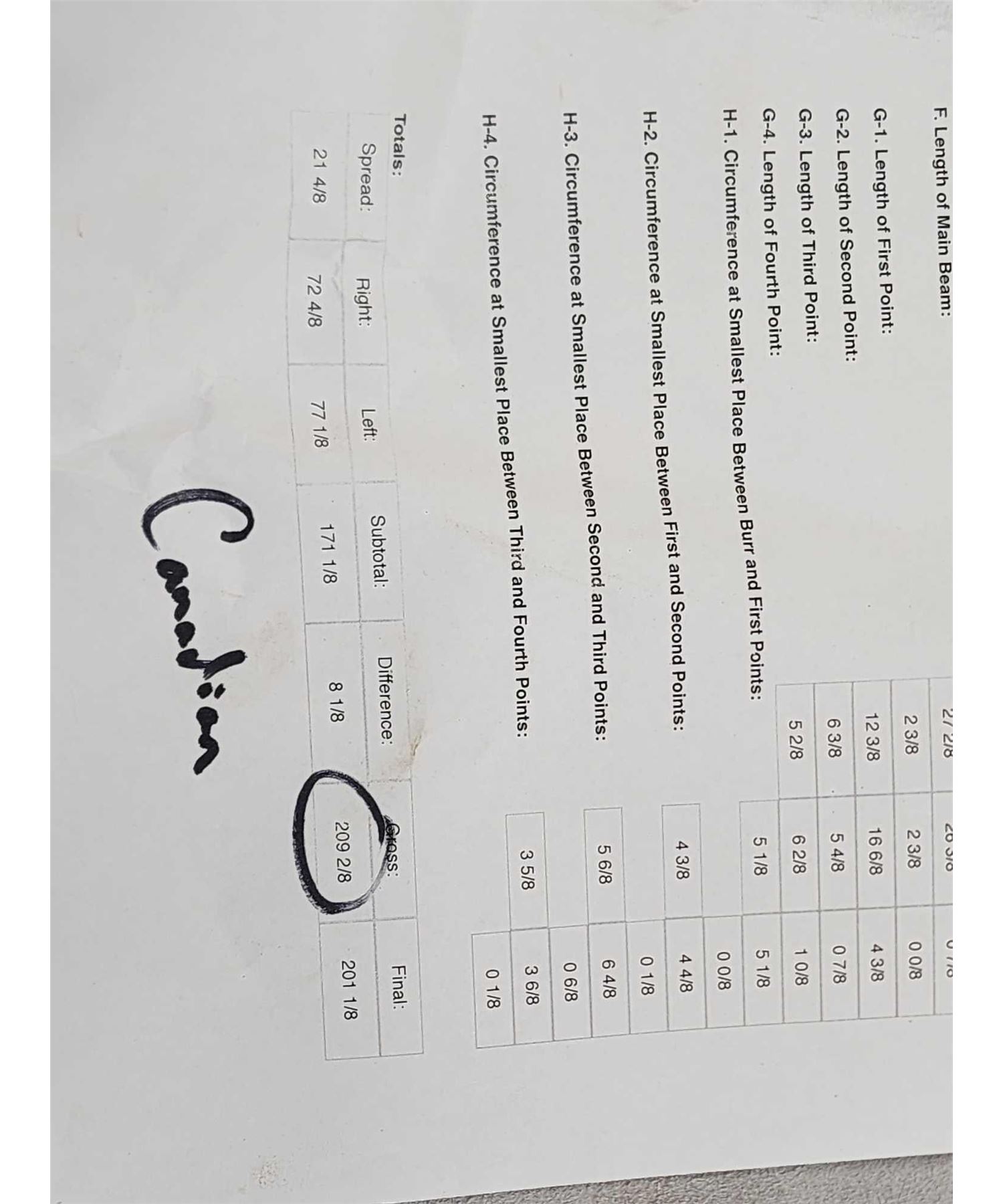 144.1 Big Nontypical Antlers with dark rich Canadian color gross score 209 2/8" with a net score of 201 1/8" score is unofficial but will be very close pretty mount!