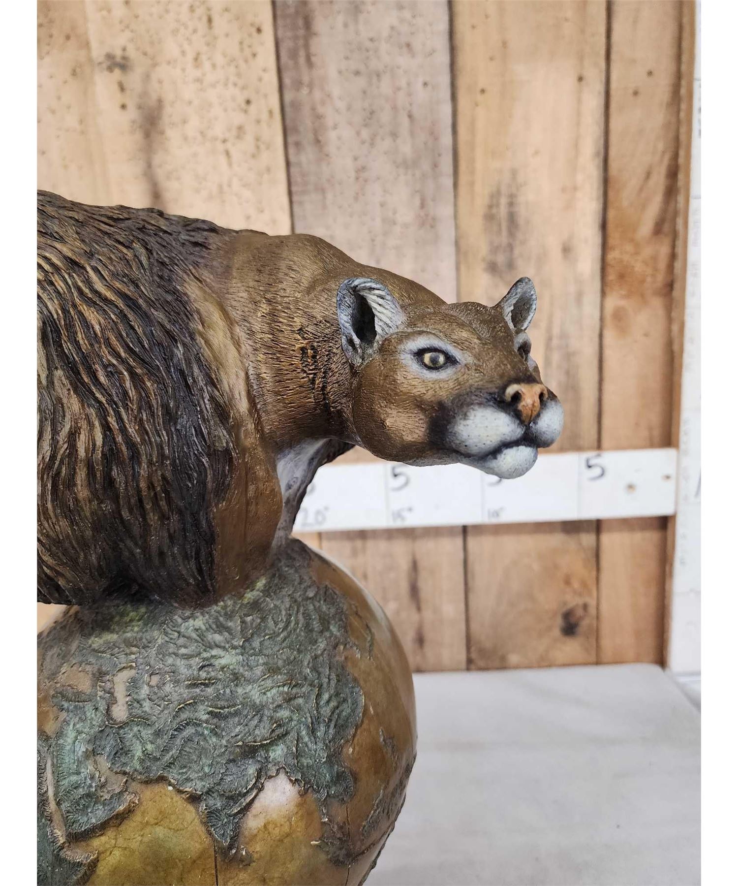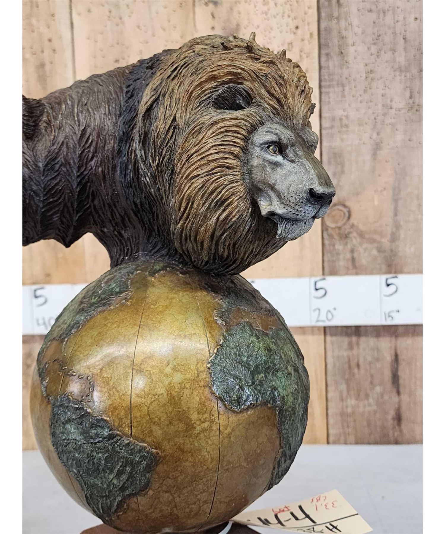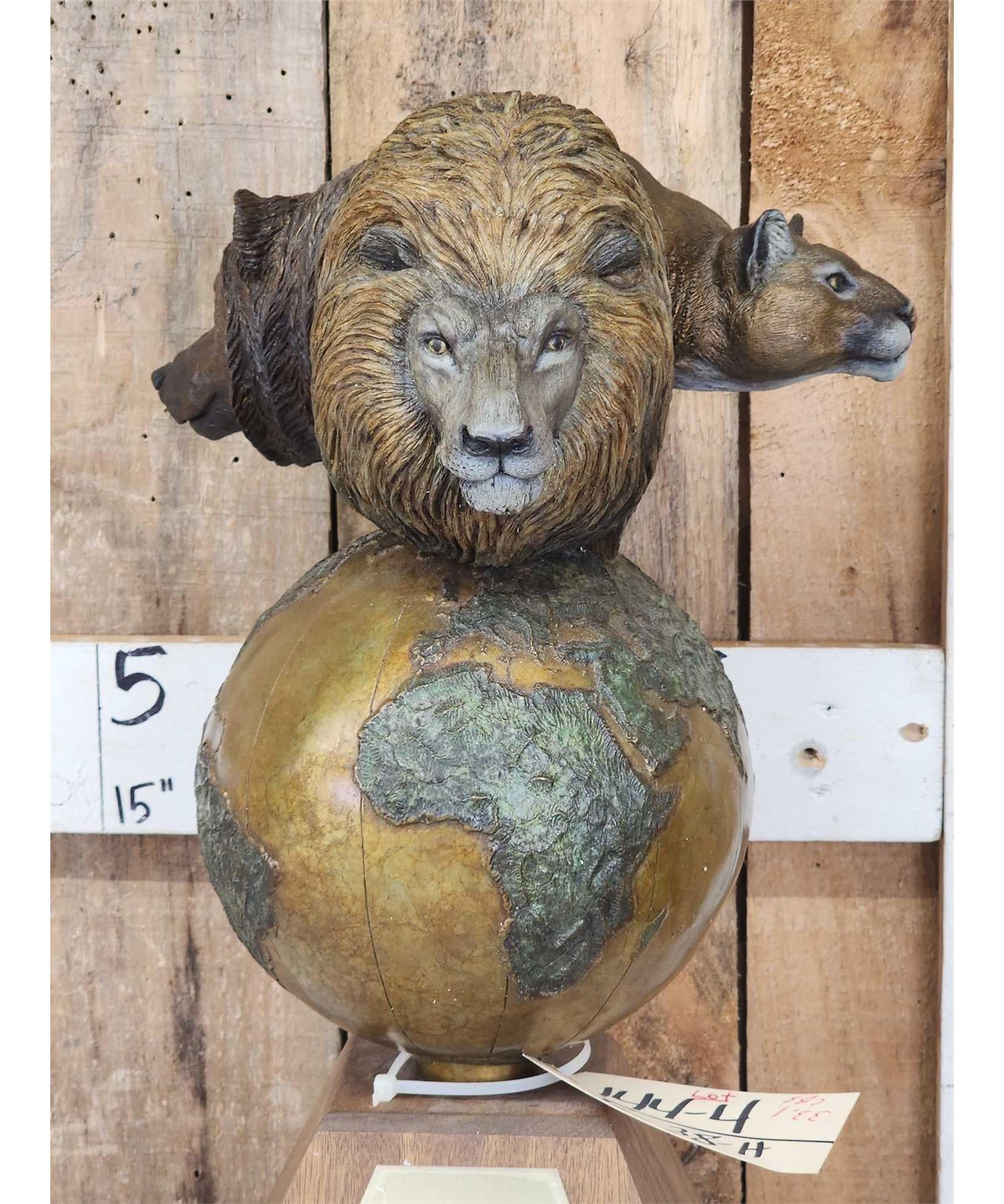 144.4 Awesome piece featuring African Lion , Grizzly Bear , Mountain Lion mounted on the world globe signed by world renowned artist Fred Boyer weight 33.1 Lbs