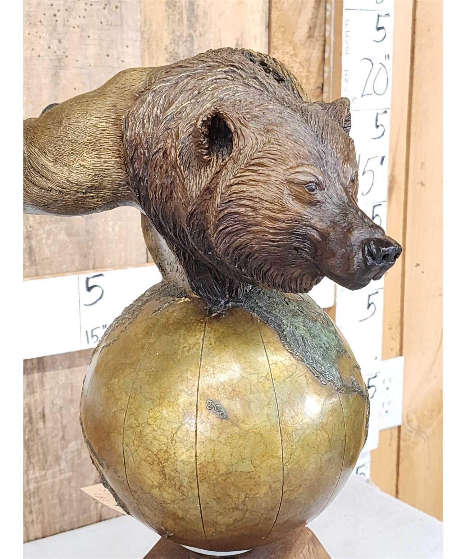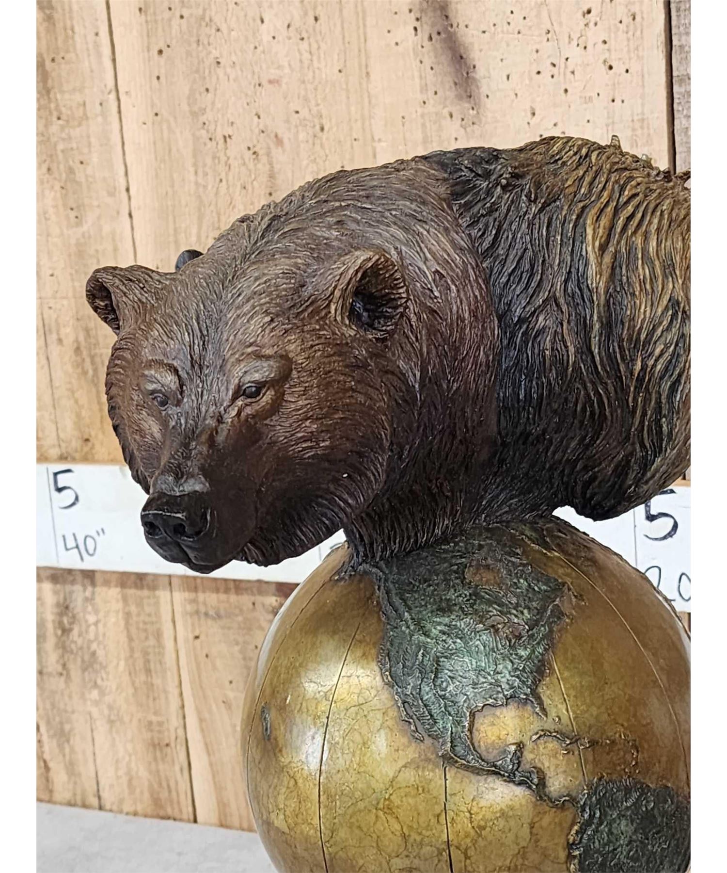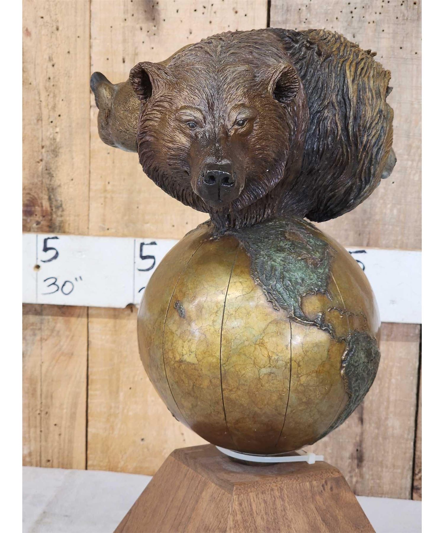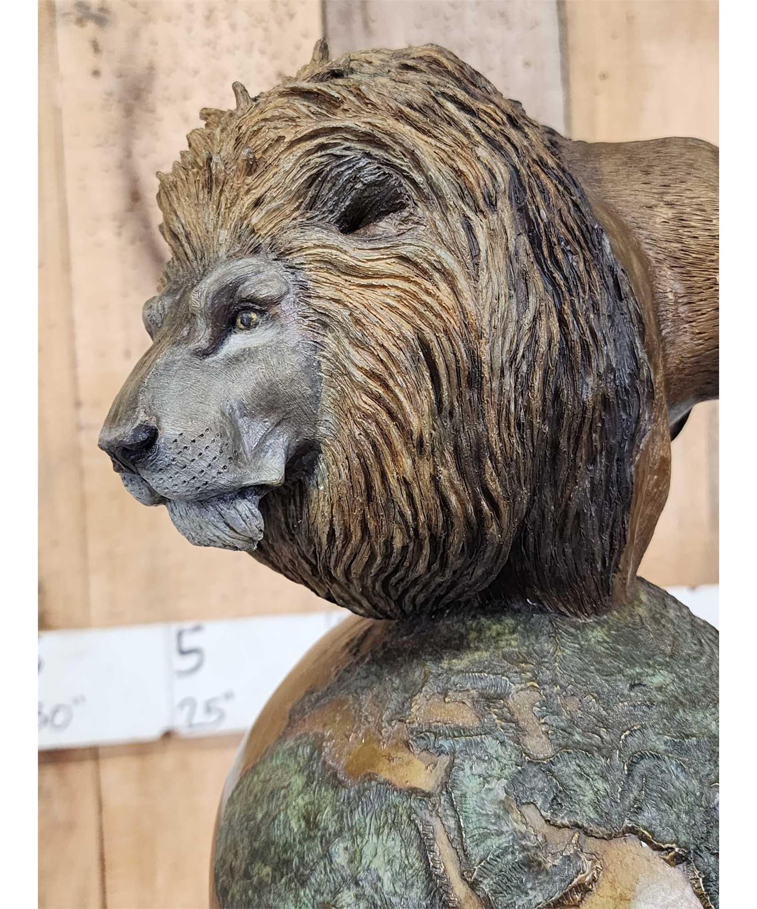 144.4 Awesome piece featuring African Lion , Grizzly Bear , Mountain Lion mounted on the world globe signed by world renowned artist Fred Boyer weight 33.1 Lbs