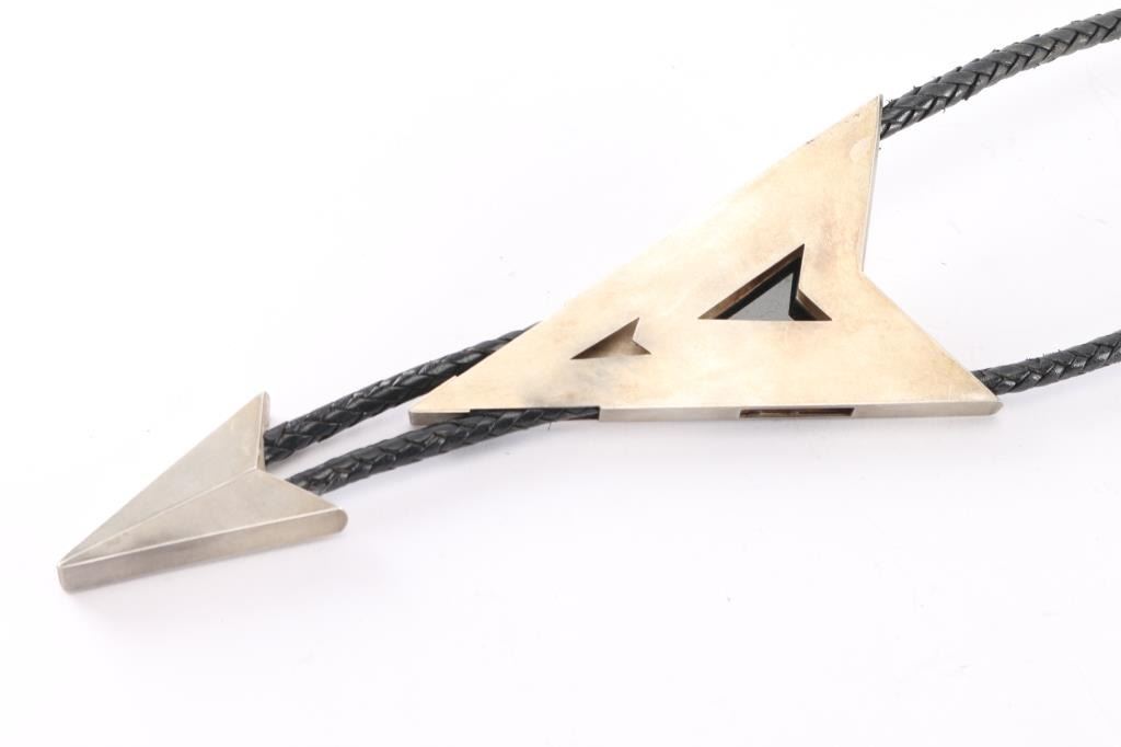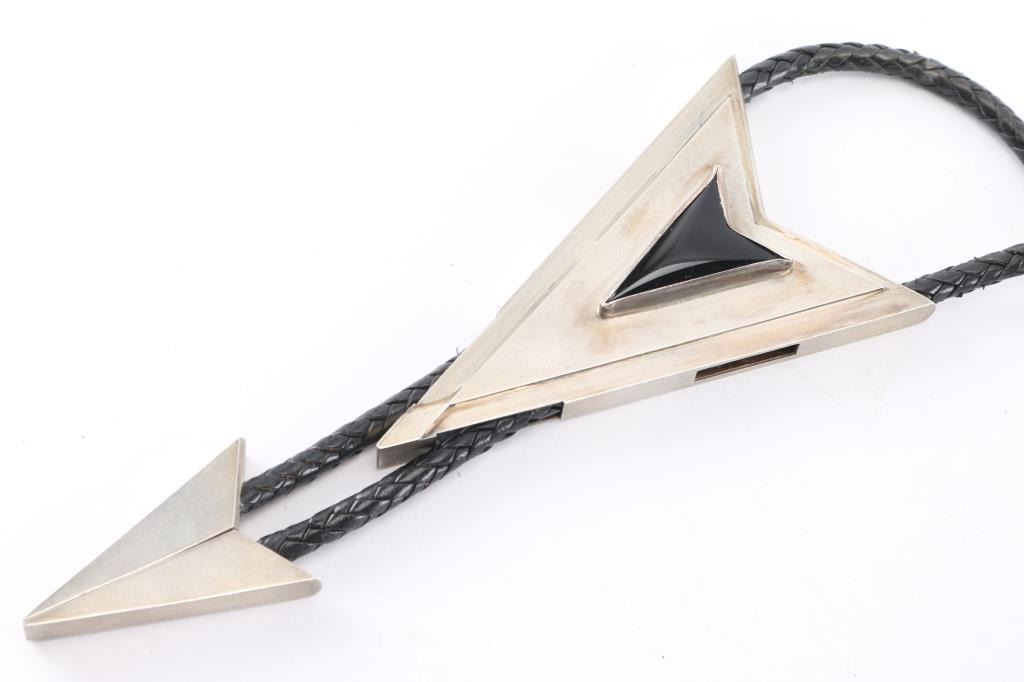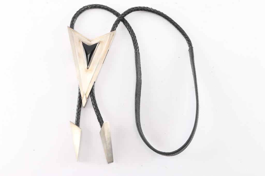 Lot 54 Brushed Metal & Obsidian Bolo Tie.