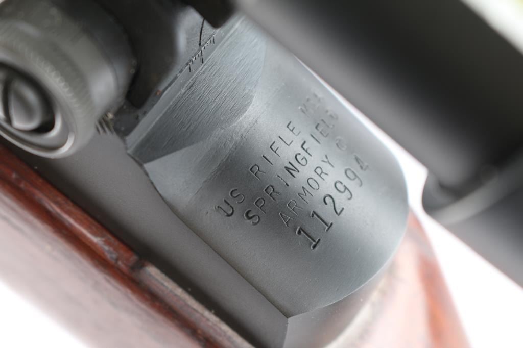 Semiautomatic rifle features parkerized finish, walnut stock with butt trap, brown fiberglass handguard, 22" barrel, , bayonet lug,flash hider, blade front sight with protective ears, adjustable rear peep sight, sling swivels, manual safety, stripper clip guide on receiver, accepts detachable magazines. Buttplate has hinged cover over trap door. Mounted with a Nikon M-308 4-16X42 scope BDC reticle on a ADLAK Industries base, clear optics, black nylon buttstock cheek iece attached. Bore is excellent/bright. Retains 96% metal finish, with minor scratches and scuffs. Stock is excellent condition with handling marks. Fiberglass handguard is excellent condition. Includes (1) 20 rd magazine.