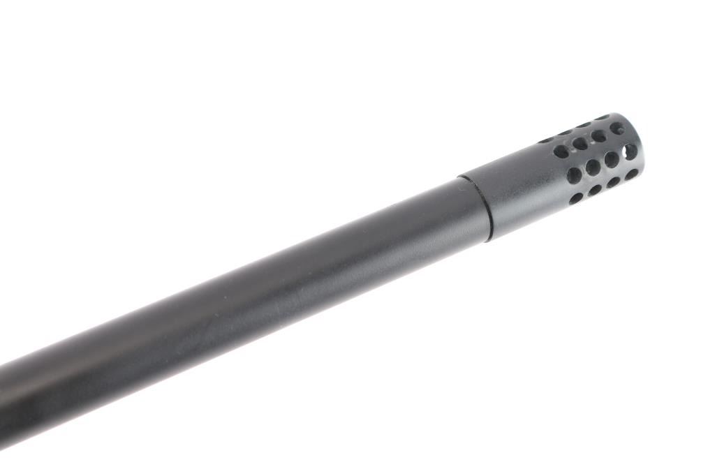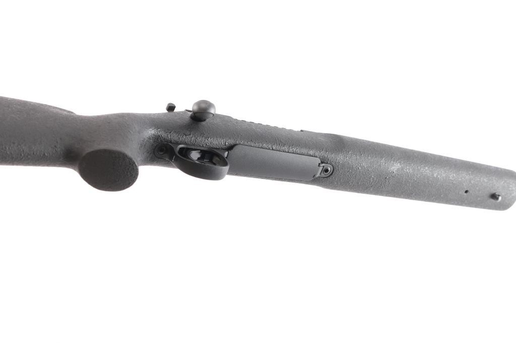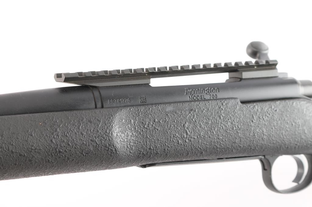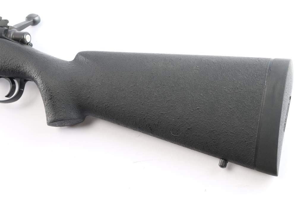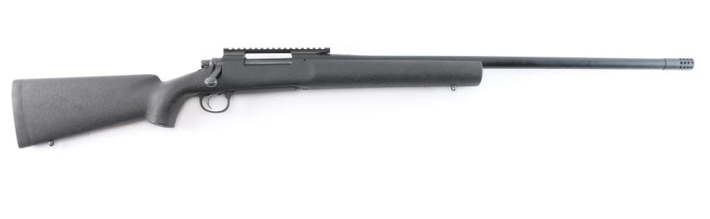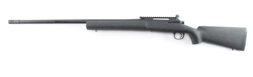 "Police" or "Precision" bolt action rifle features matte black finish, 26" heavy barrel with 1:10 twist, multi-port Vais Arms muzzle brake, Night Force 40 MOA Picatinny optics rail on receiver top, manual safety, Timney trigger, hinged floorplate, HS precision composite stock with thin Remington rubber recoil pad, two sling swivel studs, position open to allow mounting a third stud. Bore is bright. Metal retains 98% finish with slight handling marks, some losses to bolt knob. Stock is excellent.