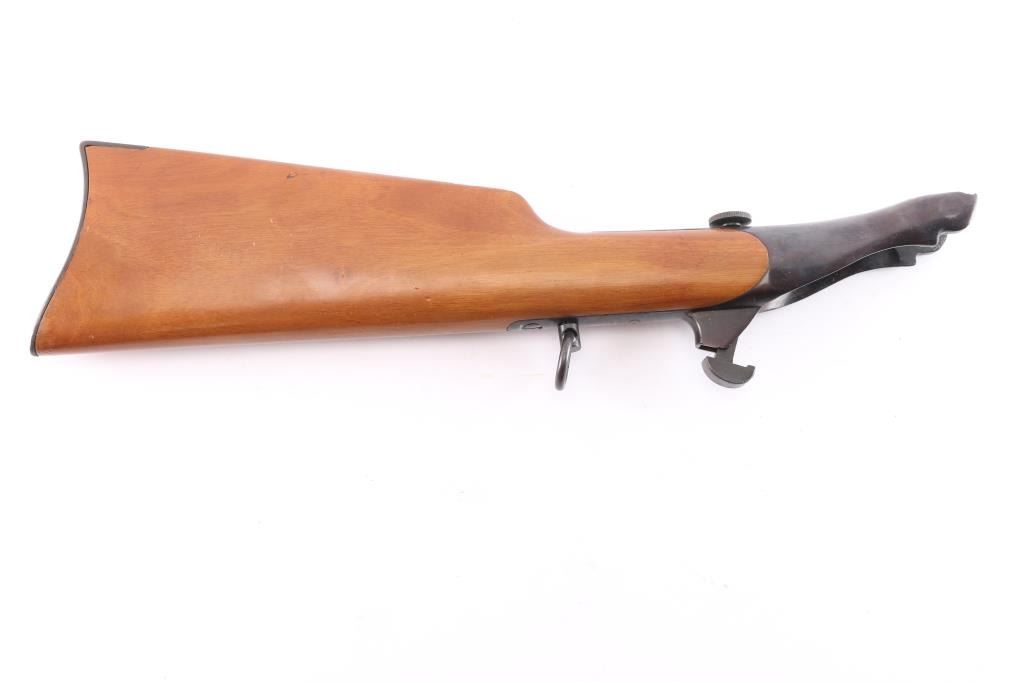 Colt M1860 detachable shoulder stock, walnut, complete with blue metal fittings including the round sling swivel for the cavalry snap hook slings. Wood has some minor scratches/dings, overall very good condition.