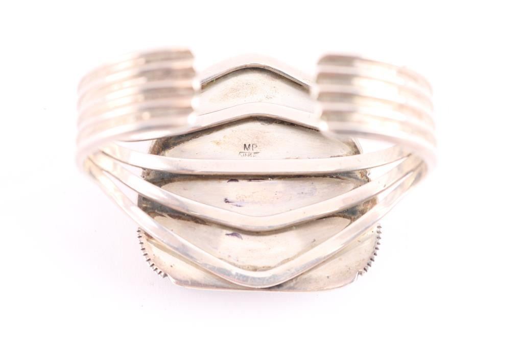 set in sterling, maker marked MP and sterling on back, 8" including gap