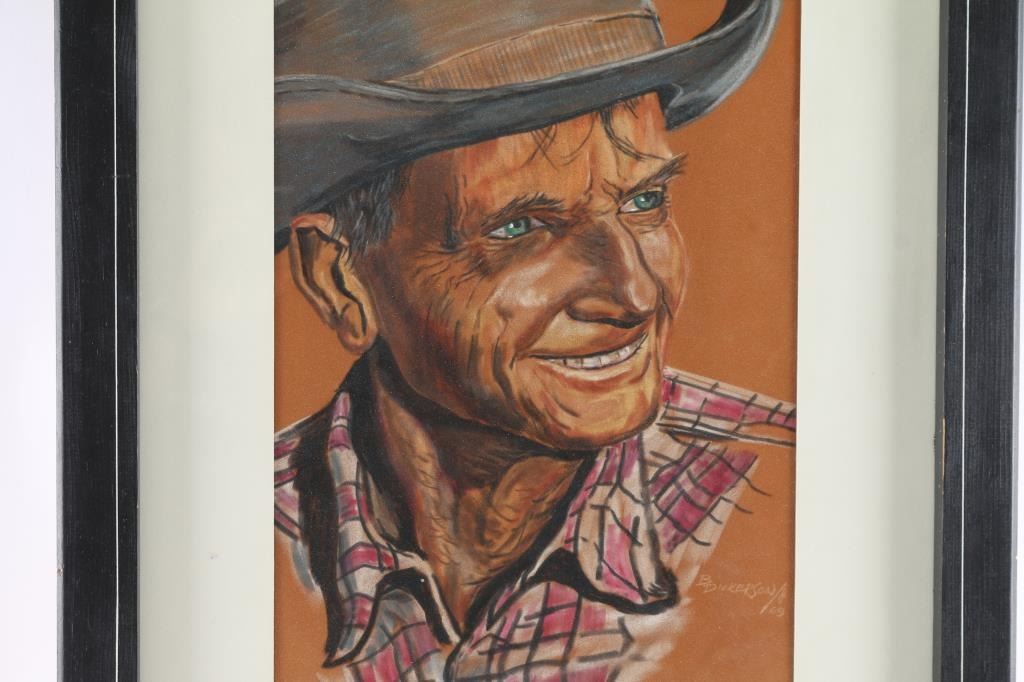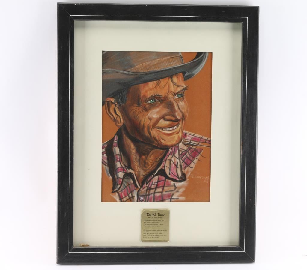 Titled "The Old Timer". Measures 15 1/2" by 11 1/2"; with frame 20 1/2" by 26".