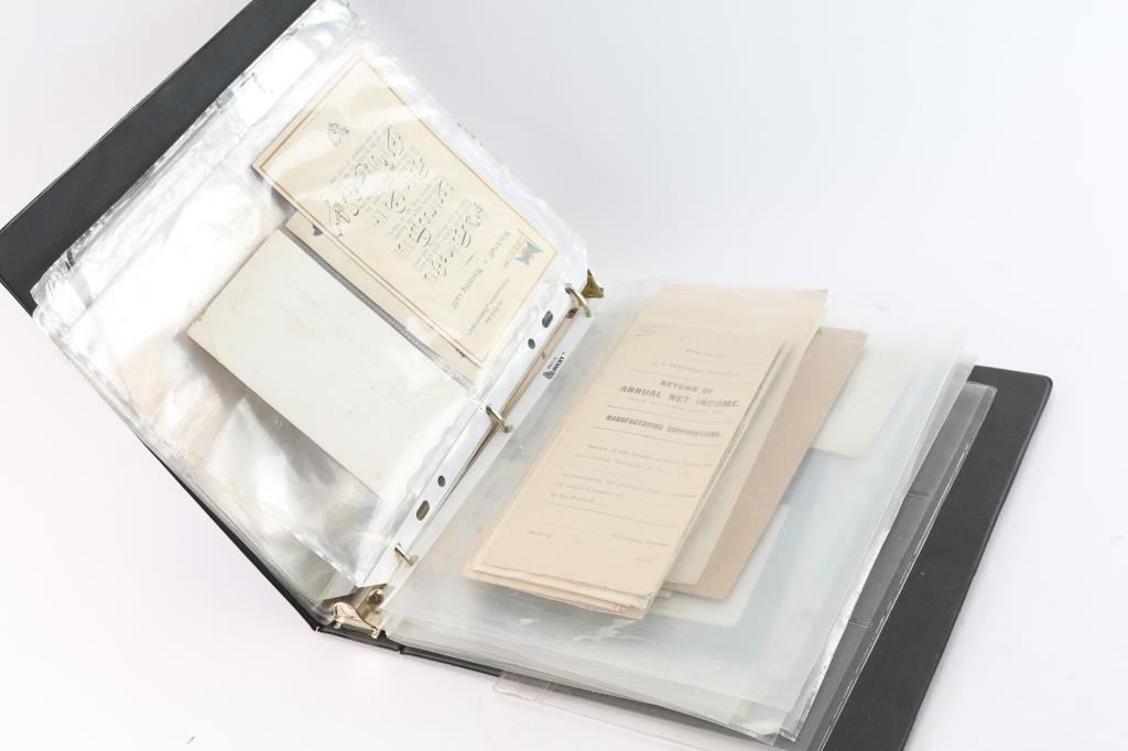 From the collection of prominent author/expert Larry Shelton who collected California Gold Rush items such as guns, knives, antiques, etc. Includes over 35 interesting paper items, such as a rodeo ticket for Jack Case Rodeo, a Henry Squires Catalog, N.Y., circa 19th Century, 1908 Browning Bros. receipt, 19th & 20th Century photos, 1900's tax returns.