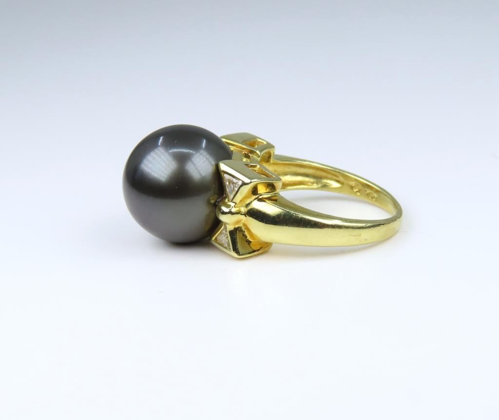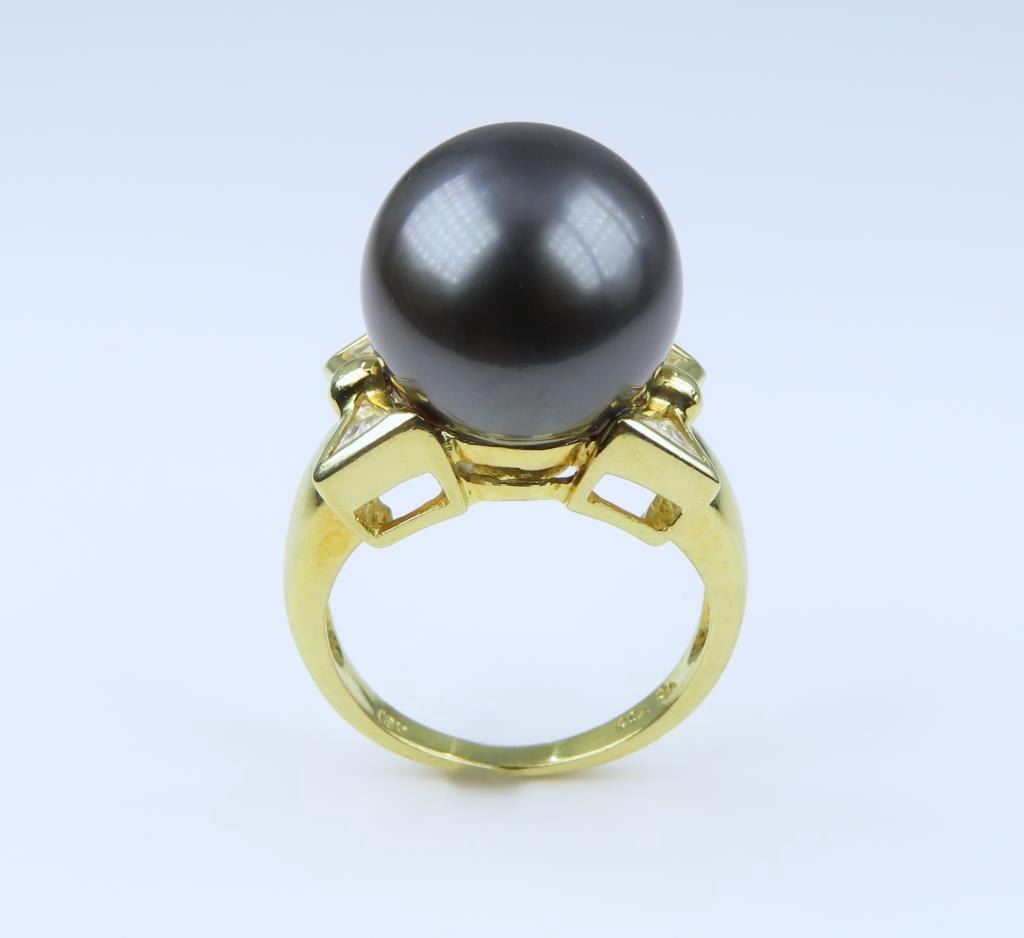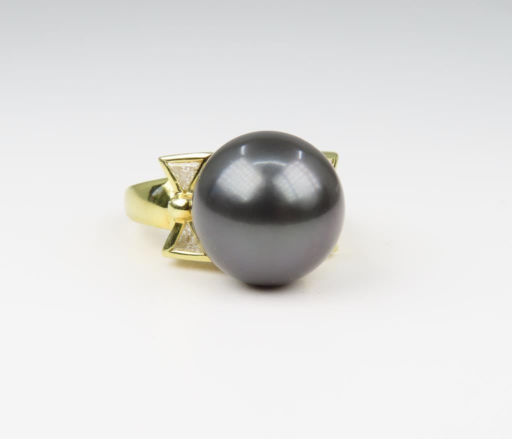 Lot 610a Elegant Tahitian Black Pearl and Diamond Ring