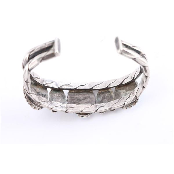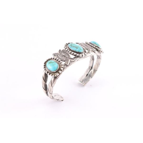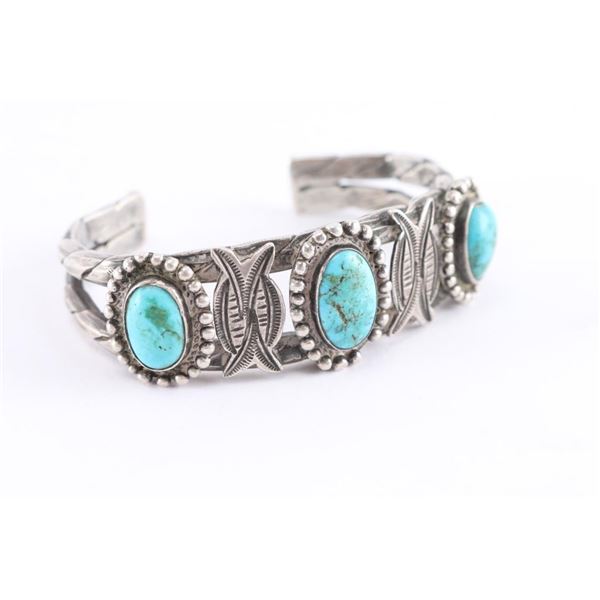 Measures 8" with gap. Oval turquoise stones are a blue green with nice matrix.