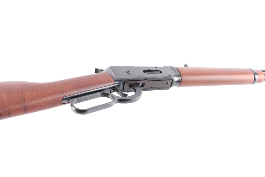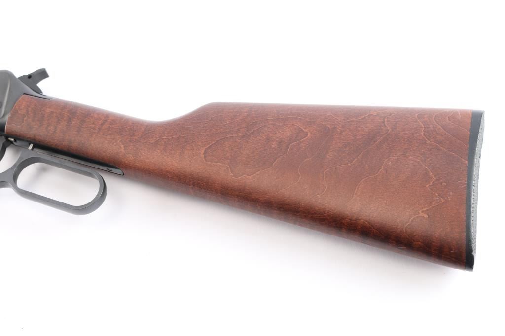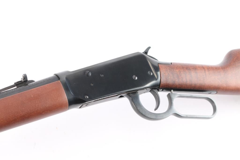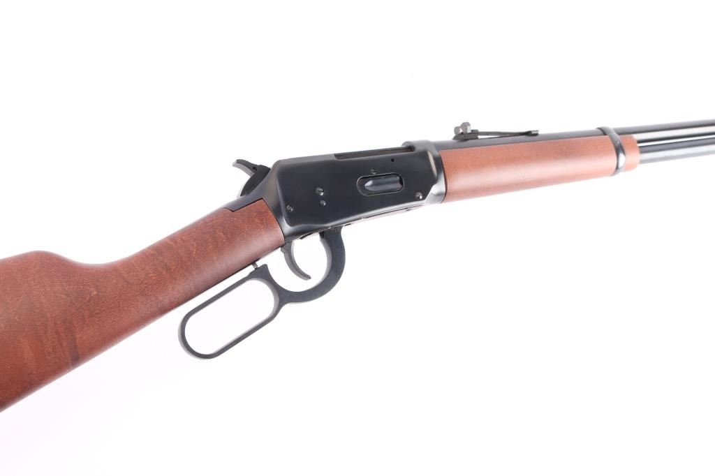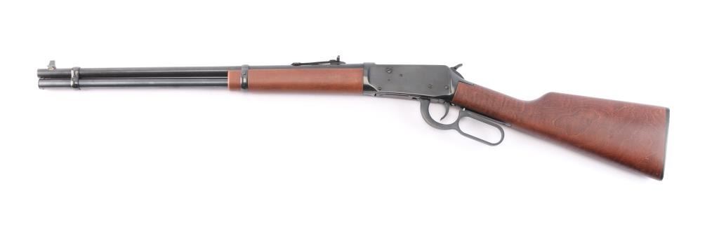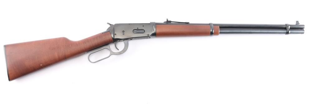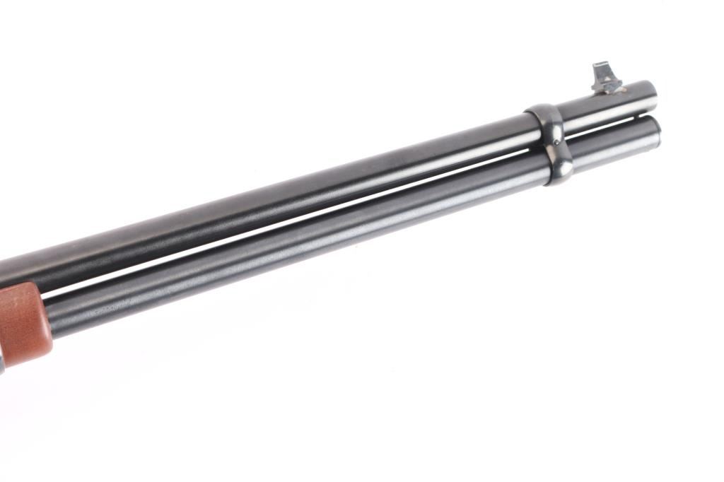 Lever-Action carbine. Angle eject economy variation of the 94. 20" barrel with full length tube magazine. blade/bead front and semi-buckhorn 'white triangle' rear sights. Blued finish. Straight birch stock, forearm. Black plastic "Winchester" buttplate. Standard Winchester markings on barrel. Winchester proof. Receiver has been drilled/tapped for optics. Action is crisp/tight. Bore is excellent/bright. Blued finish is about 97% with minor scratches, a little finish loss around the front sight. Wood is overall excellent/sound with a minor ding on the right buttstock.