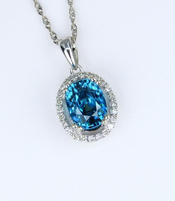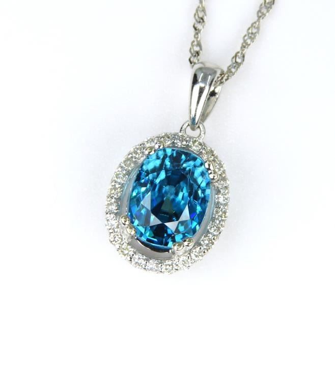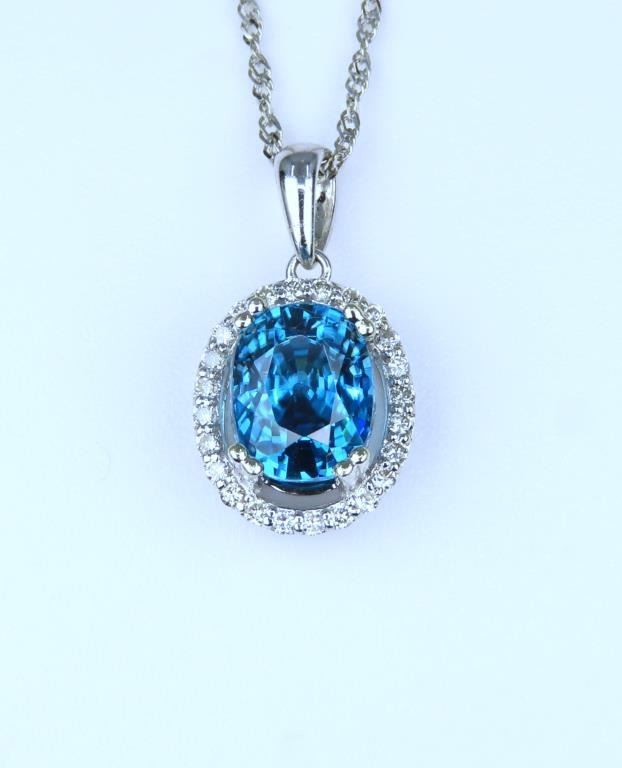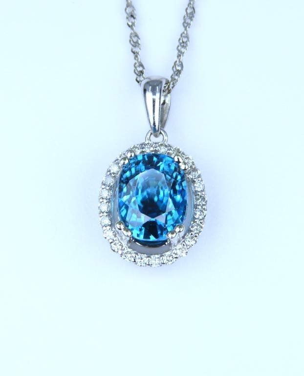 Lot 679a Radiant Fine Blue Zircon and Diamond Pendant