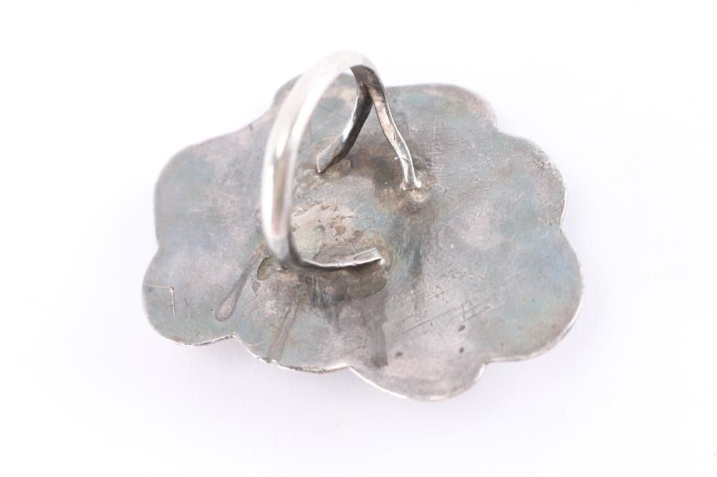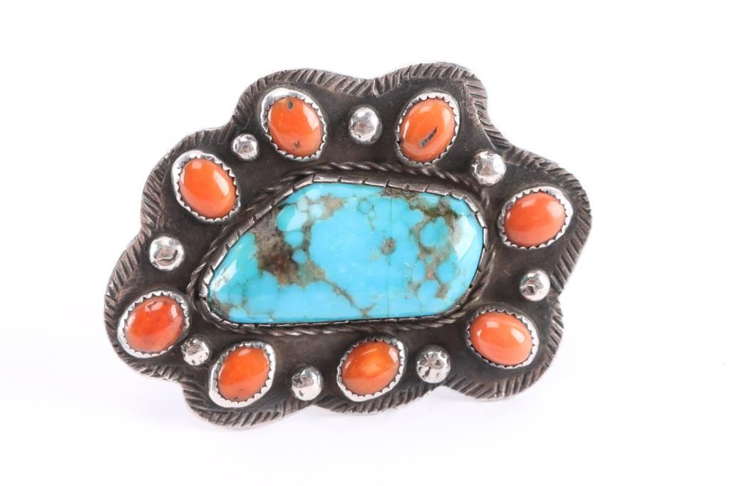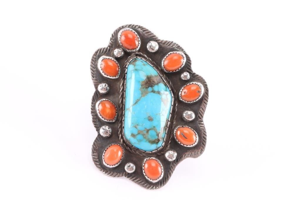 Lot 682 Old Pawn Navajo Turquoise & Coral Ring.
