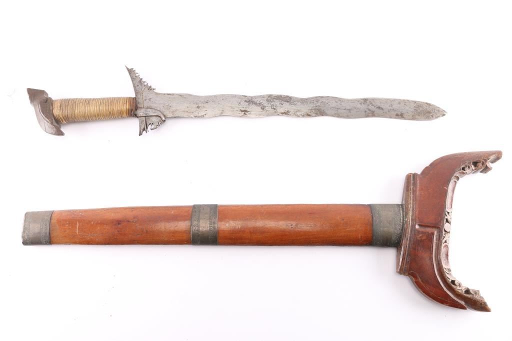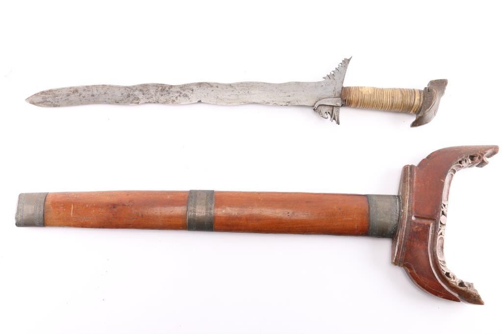 Lot 724a Philippine Moro Kris Wavy Blade Sword.