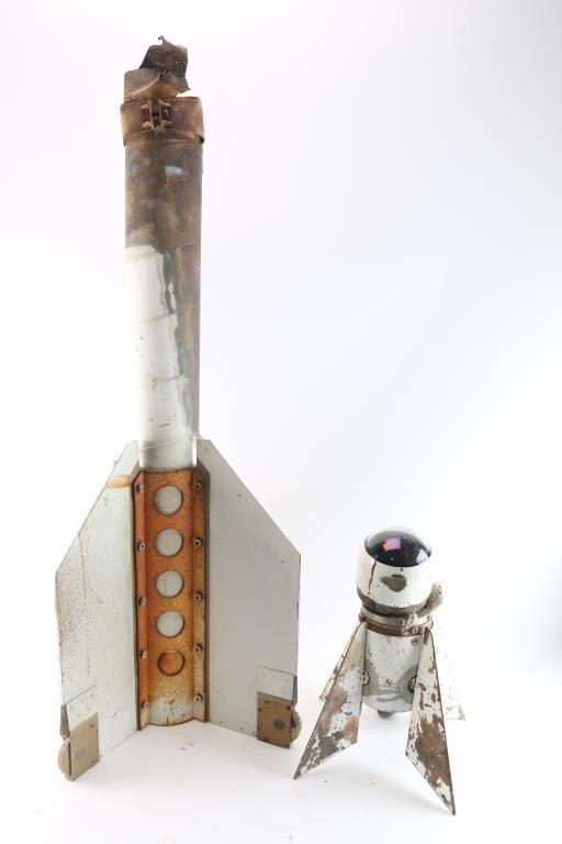 1) Aim-9 missile forward fin section, tail section and IR Dome. Parts could also be from a Russian/Soviet R-3/K-13, especially the IR Dome. The Soviets made a direct copy of the US AIM-9B Sidewinder air to air missile and was introduced in Soviet service in the early 1960's. In the West the K-13 is better known by its NATO reporting name AA-2 Atoll. The USSR came into possession of an AIM-9B which was lodged in the tail of a Chinese MiG-17, but did not explode.