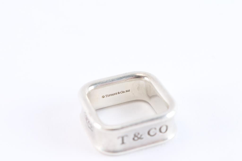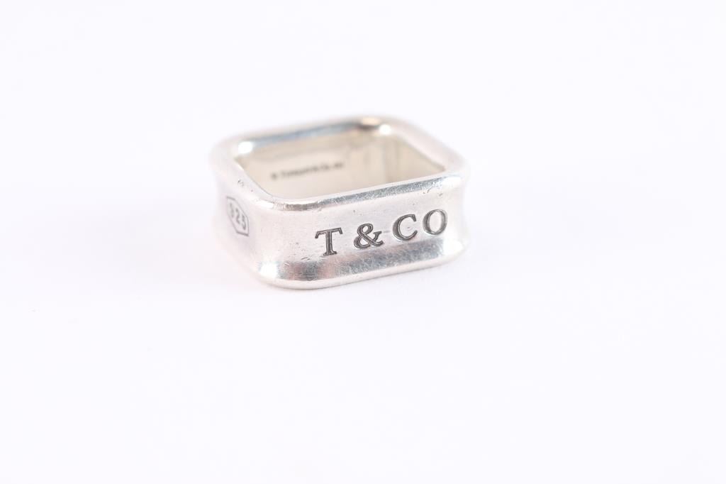Vintage Tiffany & Co 1837 Square Ring, Sterling Silver. Size 4.5. With blue suede Tiffany & Co. pouch.