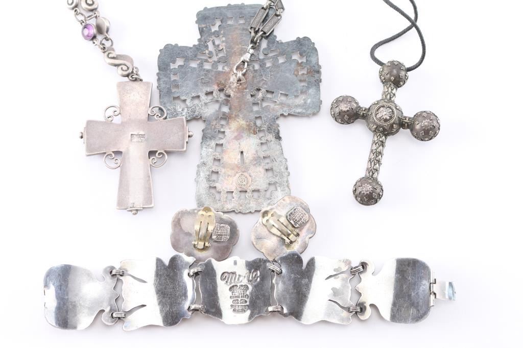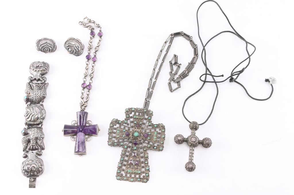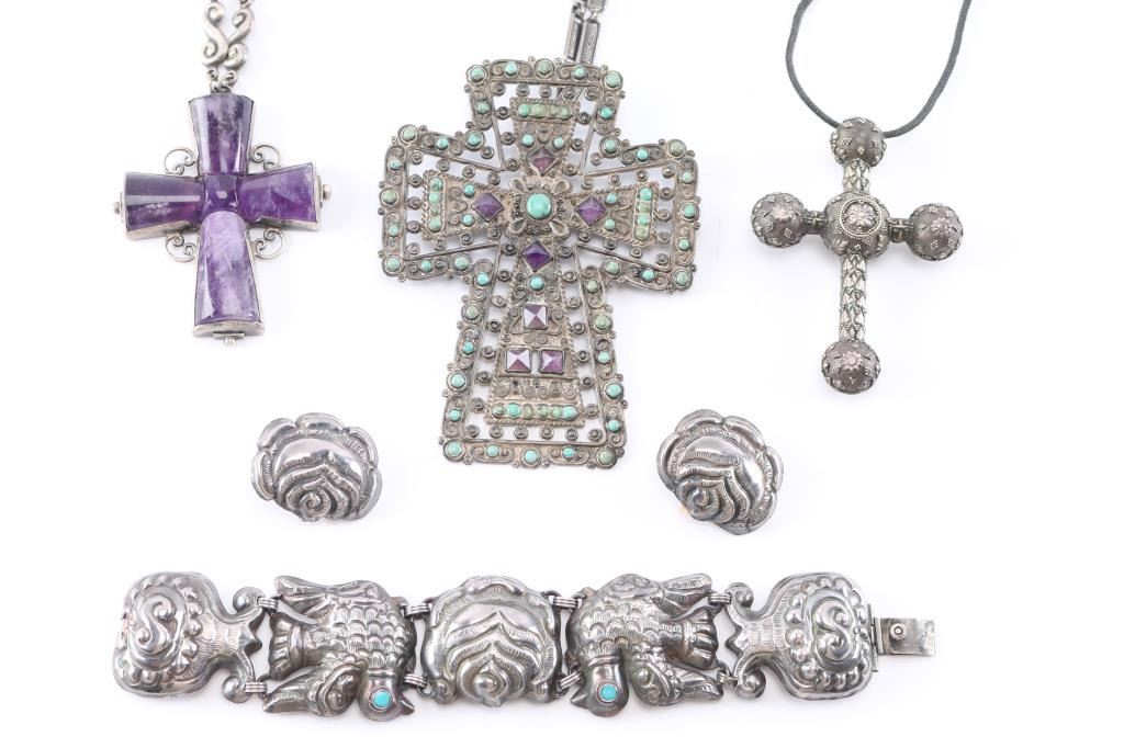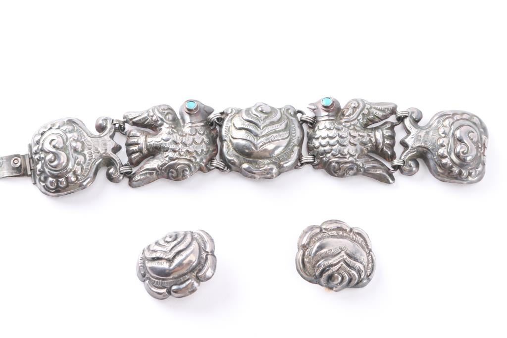 (1) Sterling Bird & Rose themed bracelet and matching clip on earrings